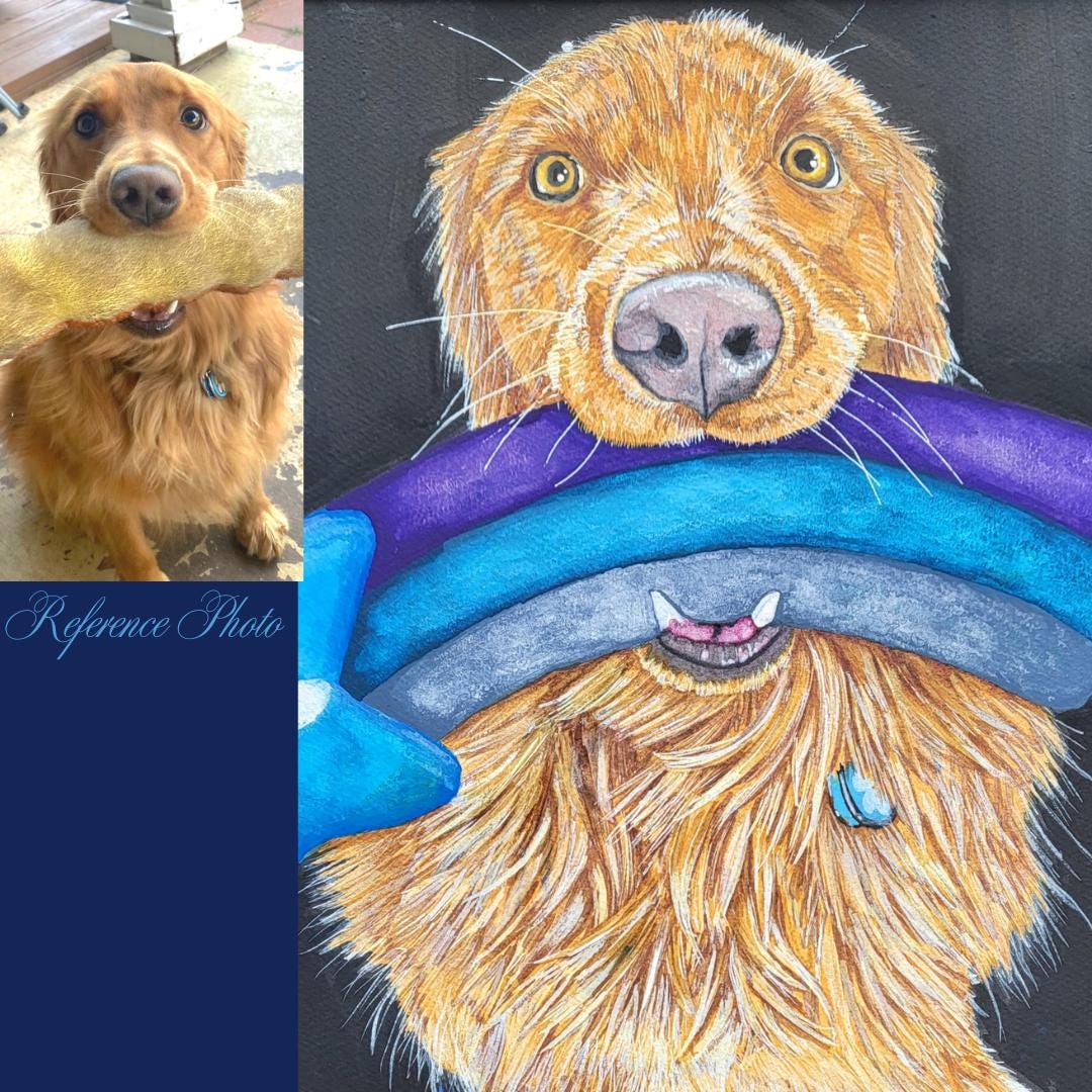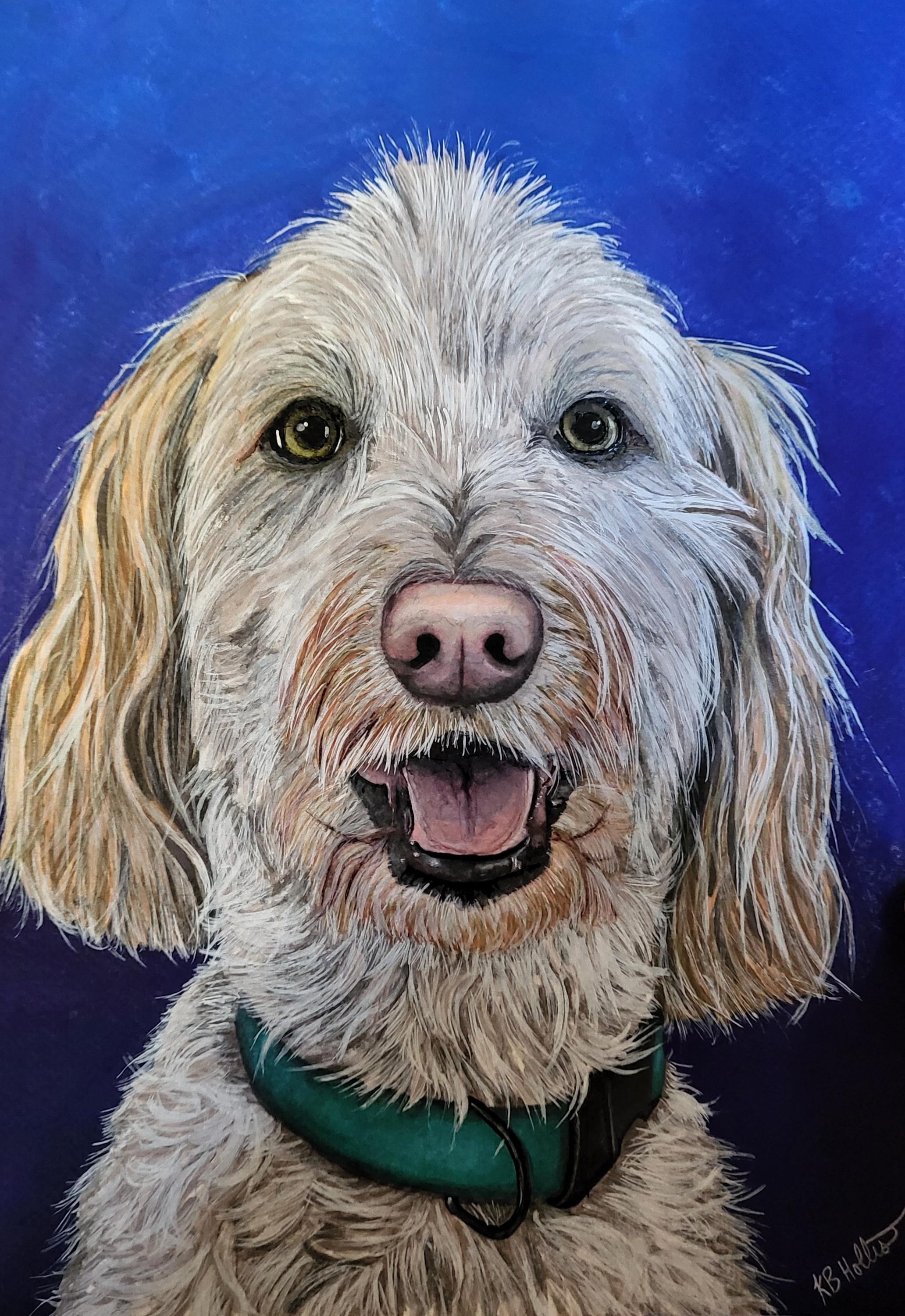 "Frank" - 9x12 mixed media portrait featuring the goodest boy, Frank