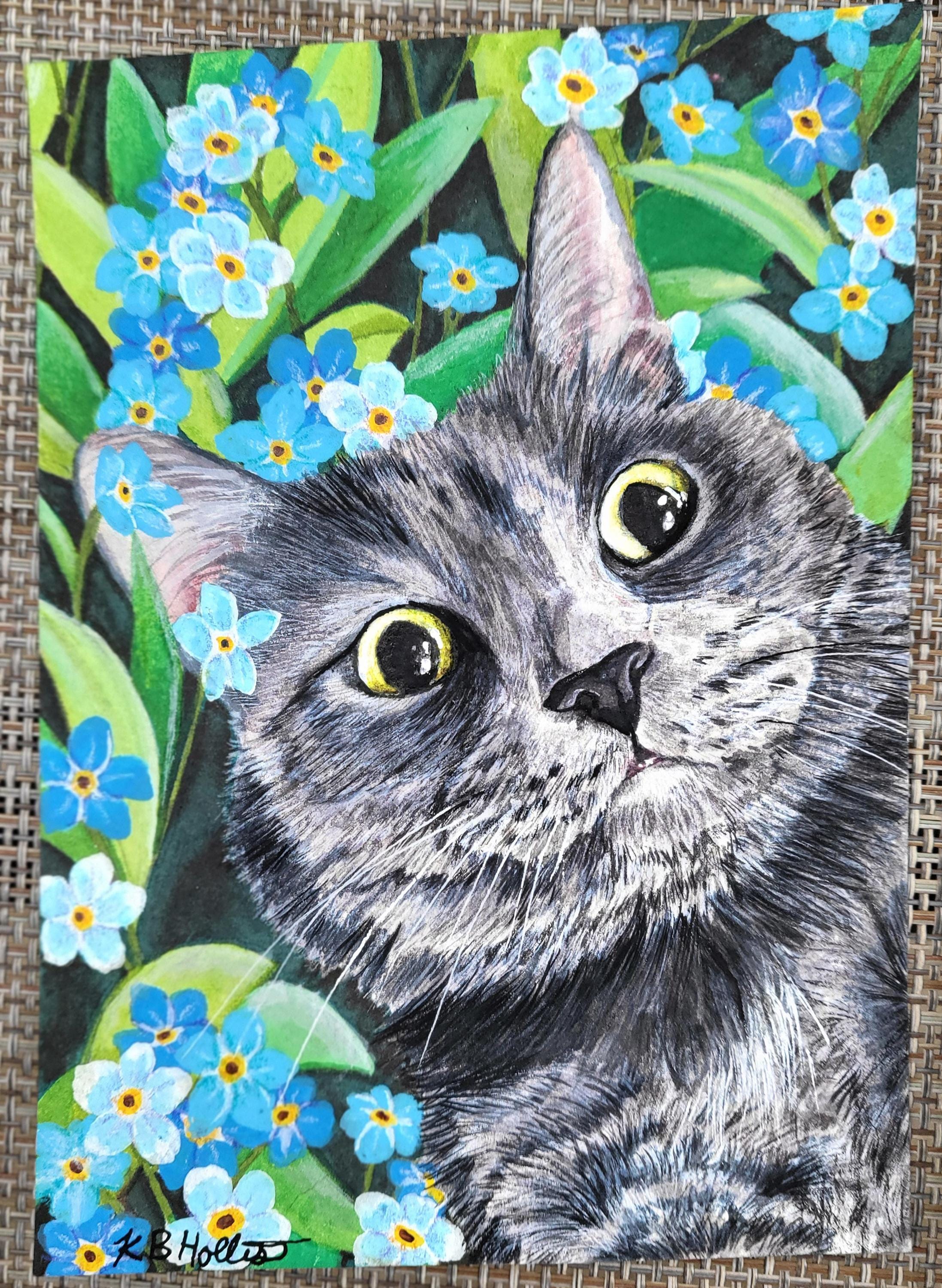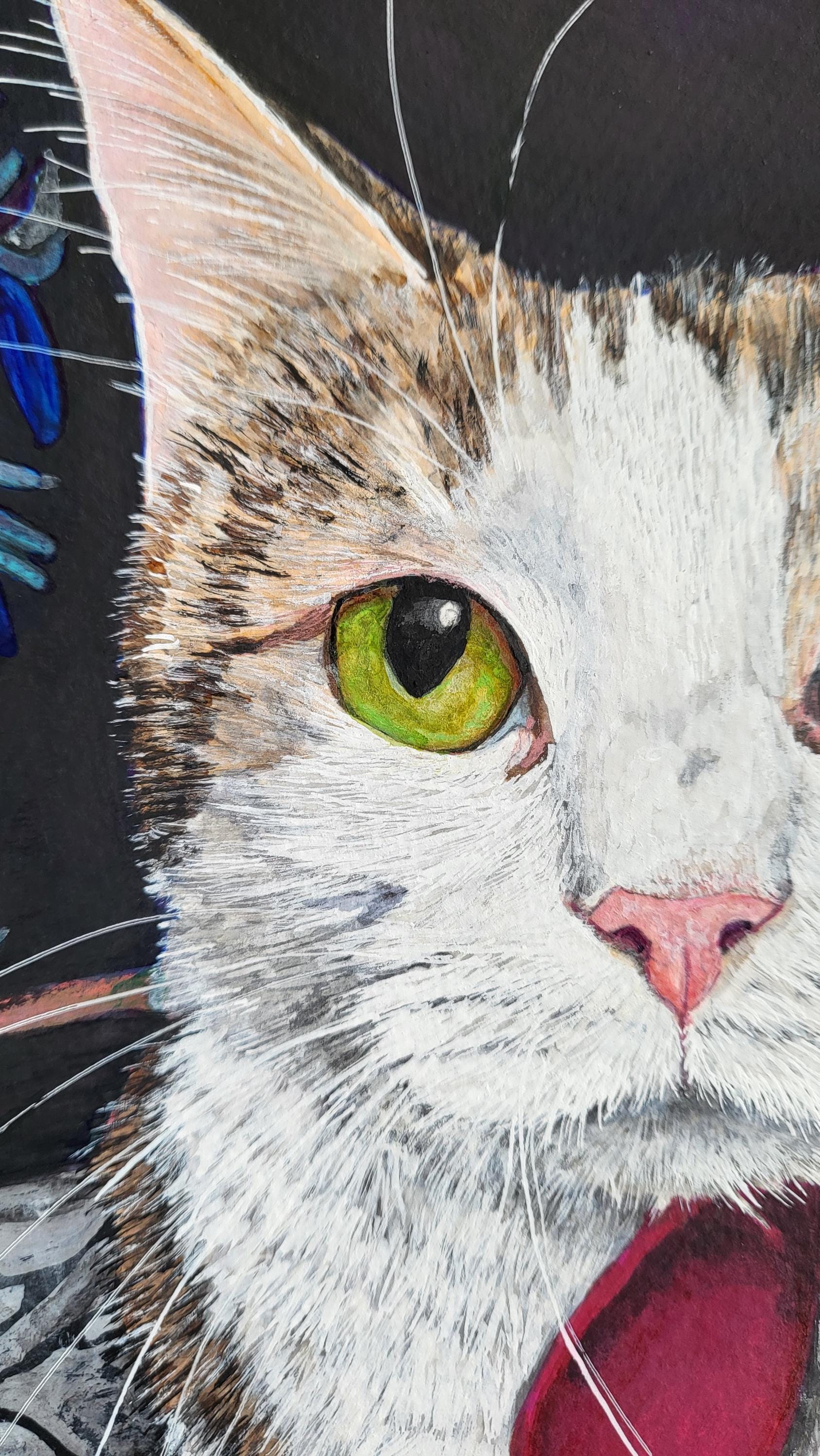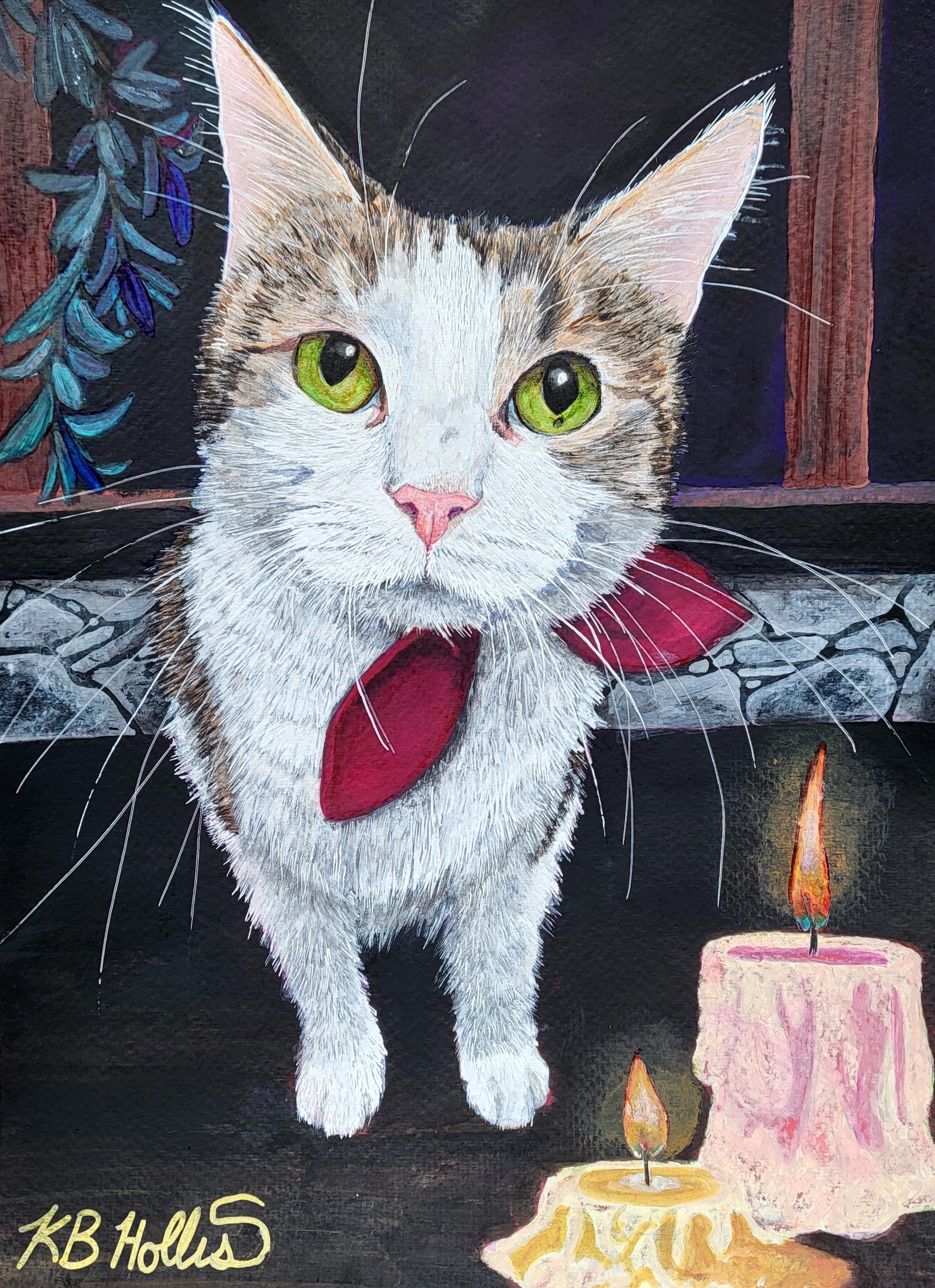 "Sulu" - 5x7 inch mixed media portrait featuring the handsome meowdel, Sulu