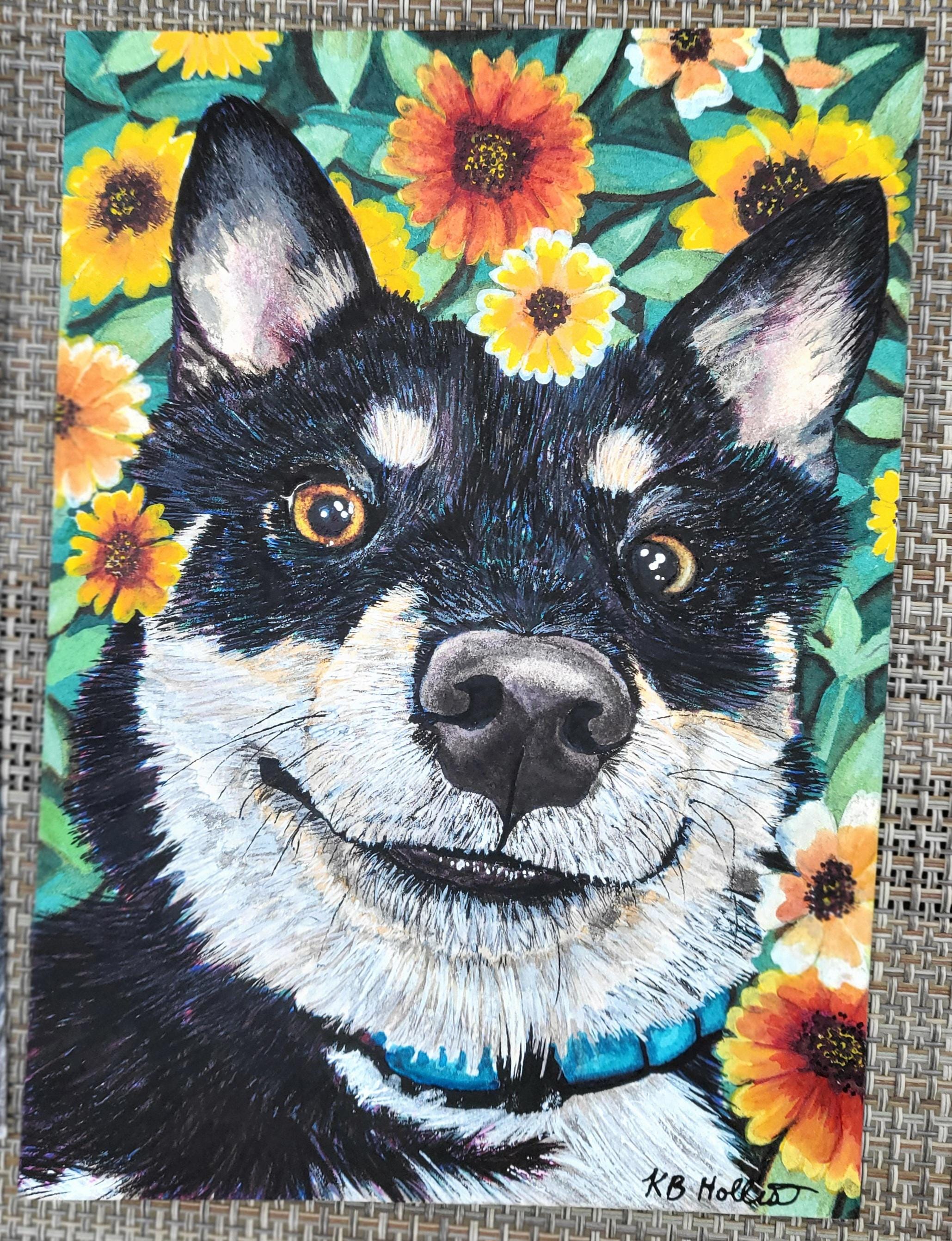 "Koda" - 5x7 inch mixed media portrait featuring the handsome model, Koda