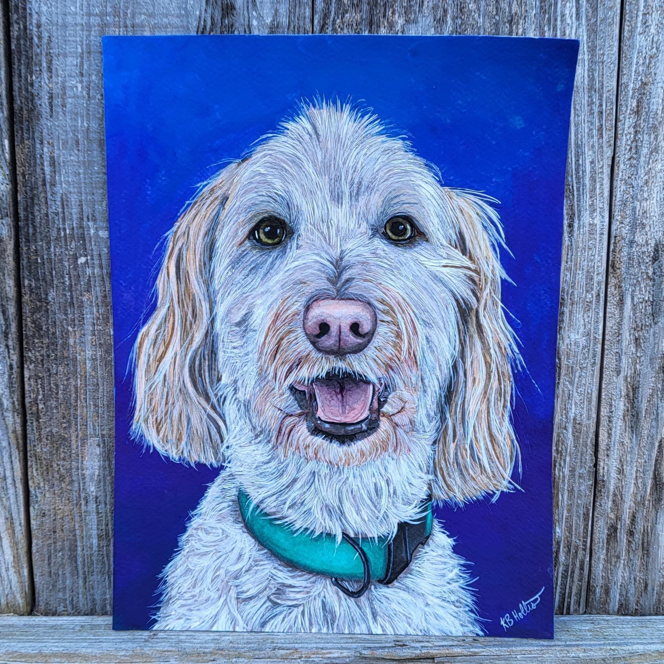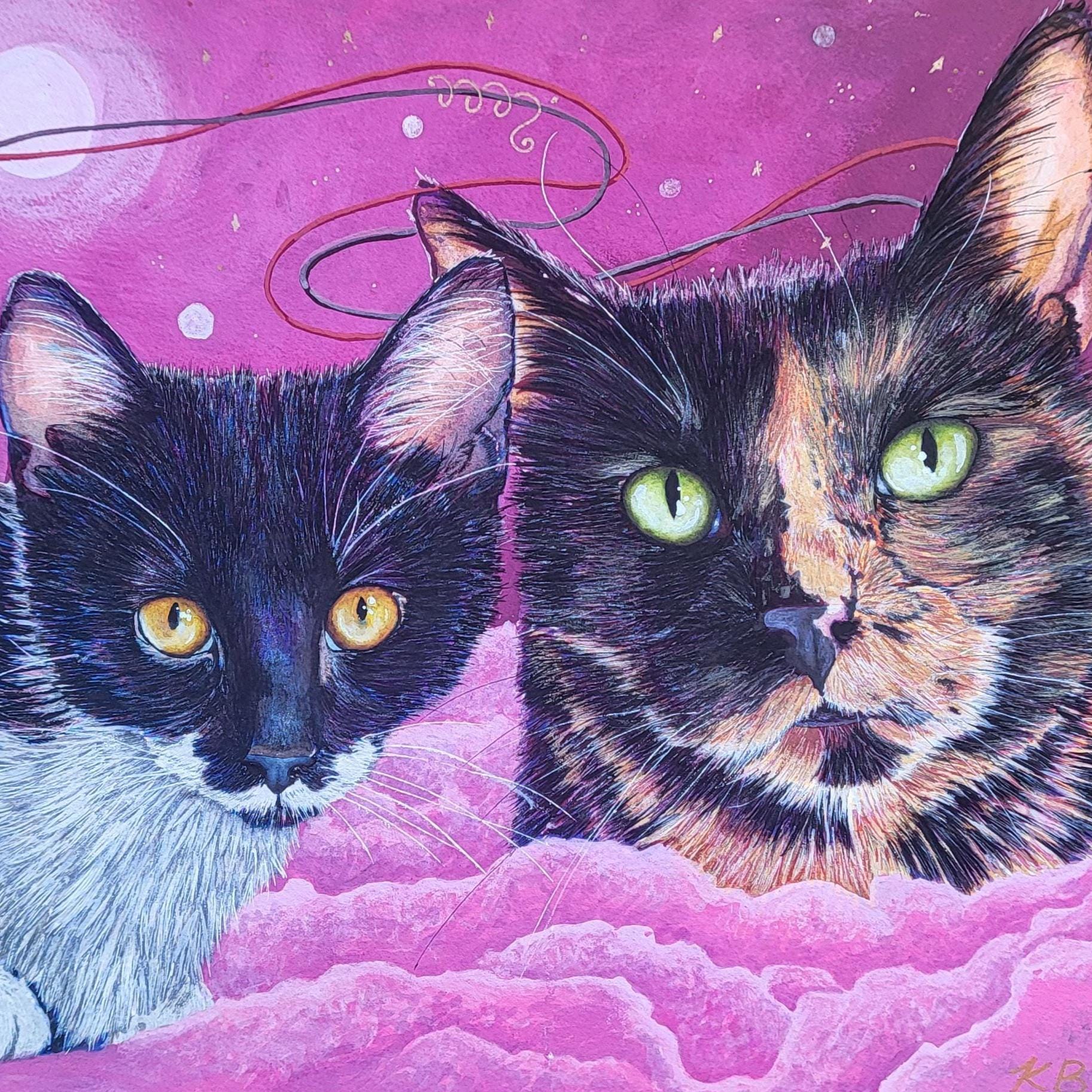 All portraits are created on archival-quality watercolor paper with acrylic paint, alcohol marker, colored pencil, and ink. Portraits can be created in 8x10, 9x12, 12x16, or 18x24 inch size measurements and can include a special background/features if requested. Turnaround time from photo receipt to completion of your portrait is 4 weeks unless otherwise stated. This listing is for individual or two-pet portraits only, but I can do portraits that include 3 pets or multiple types of pets within the same painting! If you have any questions about a multiple-pet portrait or if I can include/paint a special request, please feel free to message me at any time. All portraits are created completely by hand from photo references provided by the customer. I do not use any form of digital artwork or AI in the creation of these pieces.
