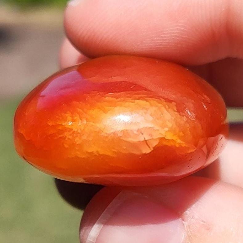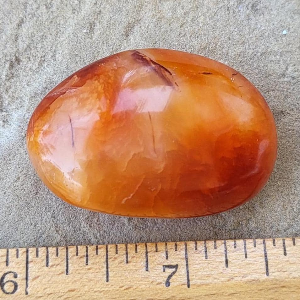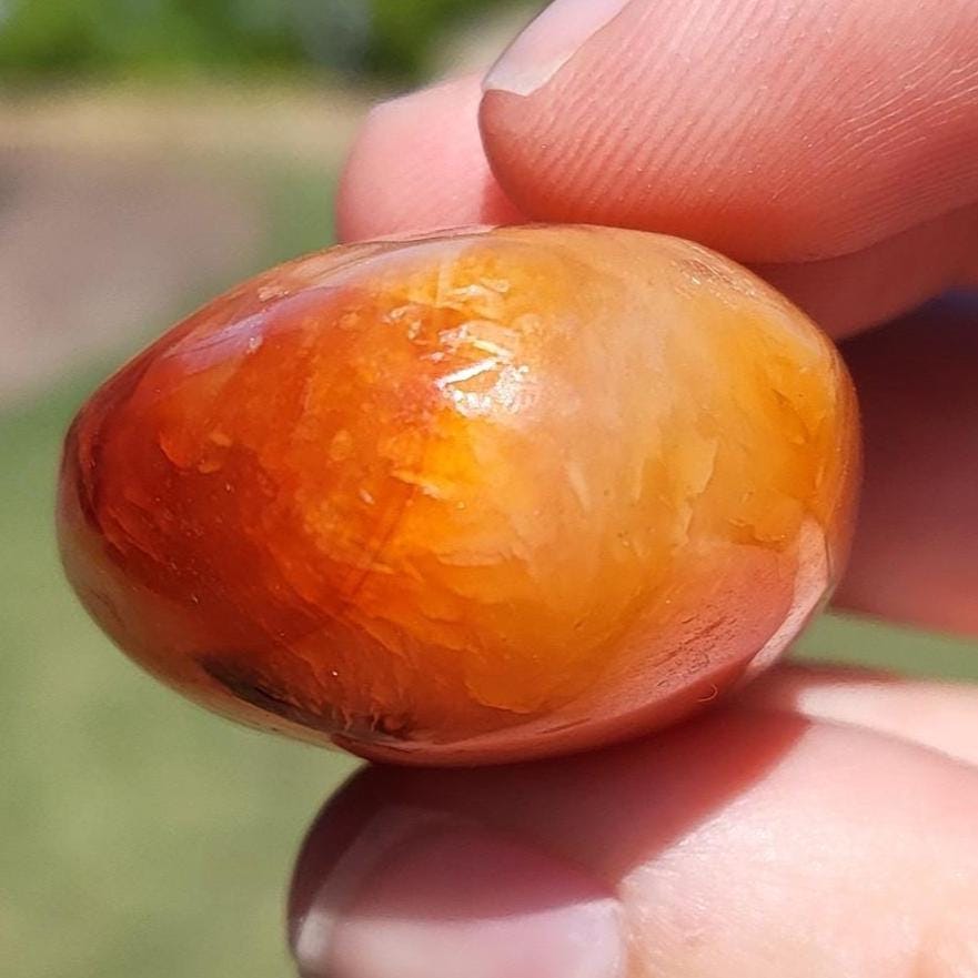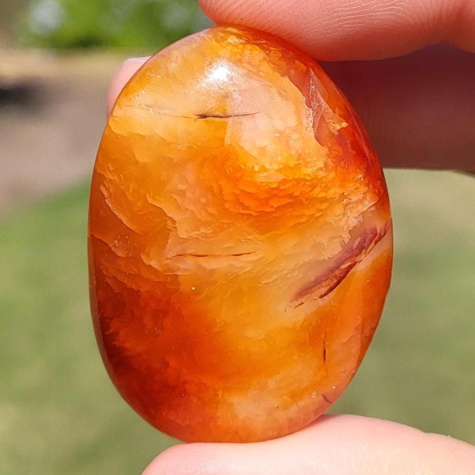 This listing is for the INCREDIBLE little carnelian crystal palm stone shown in the photos above. He measures approximately 1.5" in length and his colors and patterns are absolutely out of this world. This crystal has gorgeous swirls and lines within him - he looks like he has crystal clouds inside in the sunlight. He is 100% natural and made by Mama Earth. The energy that I get from this crystal is so energetic, creative and joyful. He would be excellent as a meditation or magical working companion, or placed anywhere in your home or sacred space to project his magical, abundant energy.