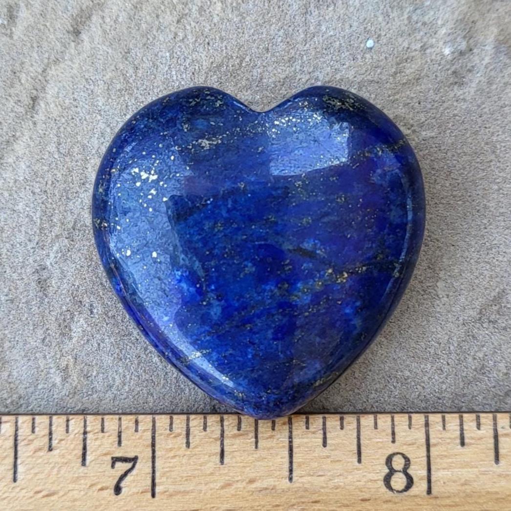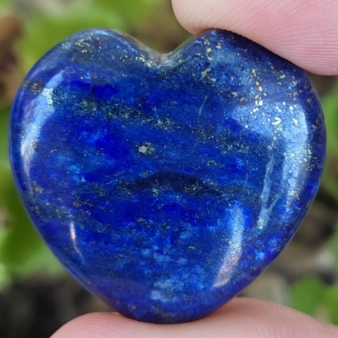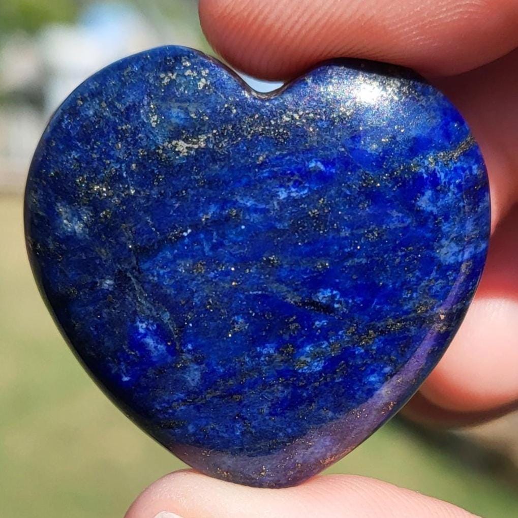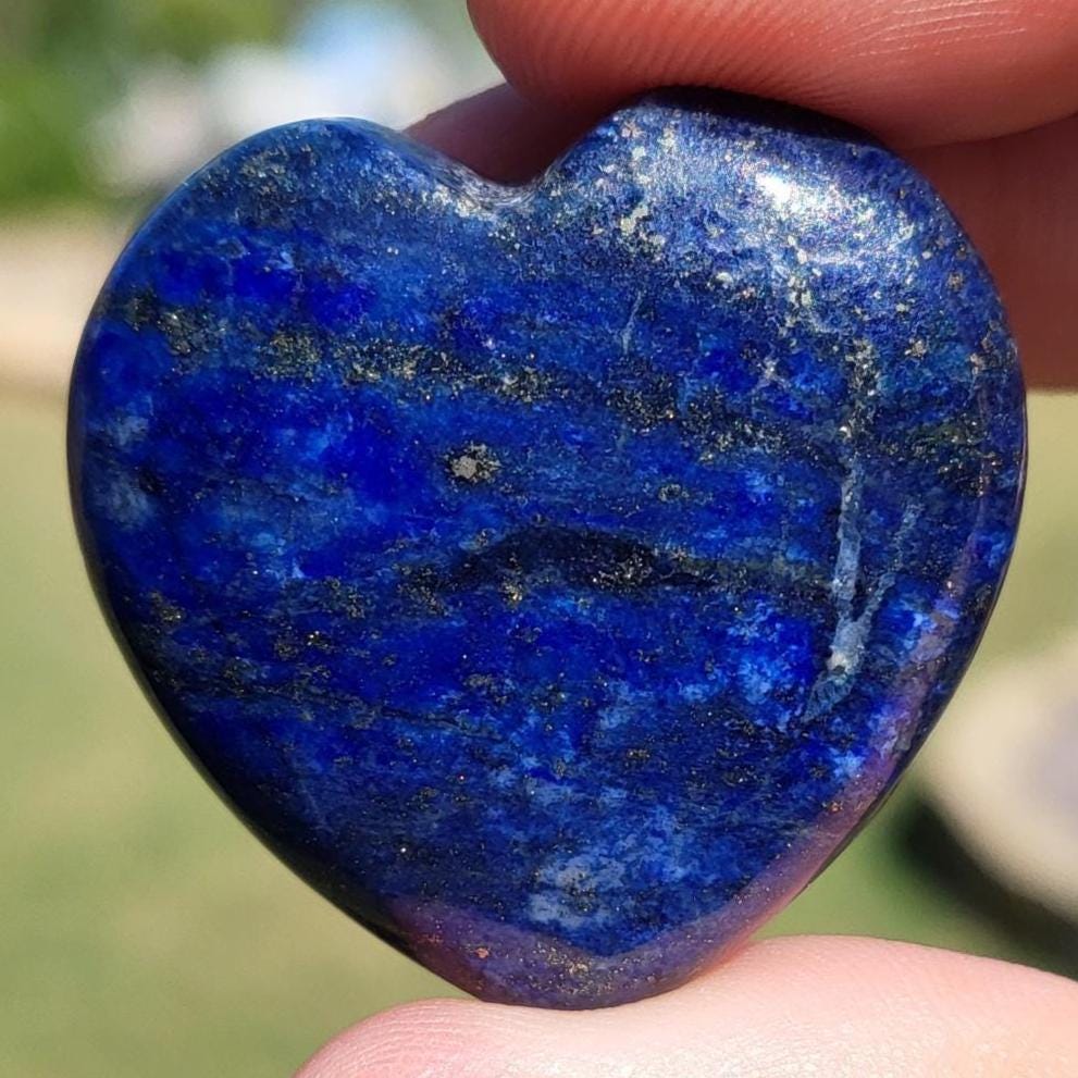 This listing is for the lovely lapis lazuli crystal heart shown in the photos above. This crystal is such a deep, vibrant blue and has sparkly spots of gold pyrite throughout. Measuring 1.25" in length, the colors in this gorgeous piece are 100% natural and created by Mother Earth. This little heart's energy feels courageous, confident, and communicative. She would be perfect as a crystal companion in a home, pocket, or working space. She would also be a wonderful meditation companion.
