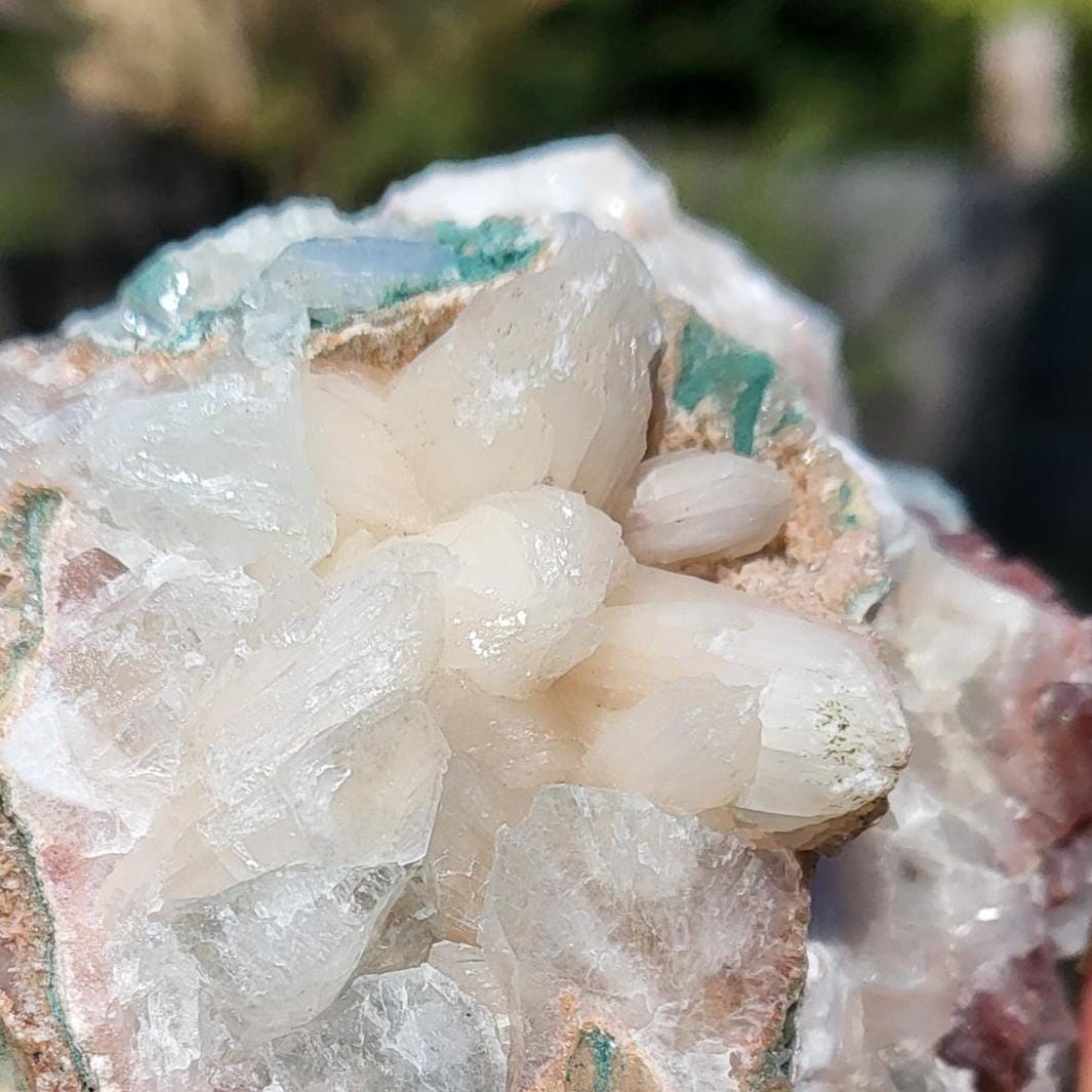 This listing is for the gorgeous, sparkly XXL green apophyllite and peach stilbite crystal cluster shown in the photos above. Measuring about 5" in length and weighing a heavy 2.75lbs, this cluster is full of natural, sparkly green apophyllite crystals on one side, and a peach stilbite crystals with a peach stilbite crystal flower (shown in second photo) on the other! Some of the crystals even have tiny little rainbow inclusions within the right light. Pictures do not accurately show just how lovely this cluster is, so I have included a video to help better capture her beauty. Her energy is very magical, stable, intuitive, and transformational. She would be excellent as the center of a crystal grid, as part of an altar or sacred space, or placed anywhere within your home or business to project her magical, spirited energy.