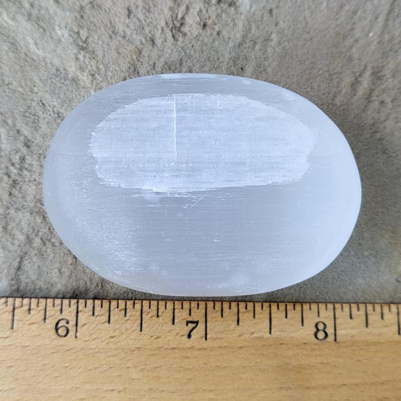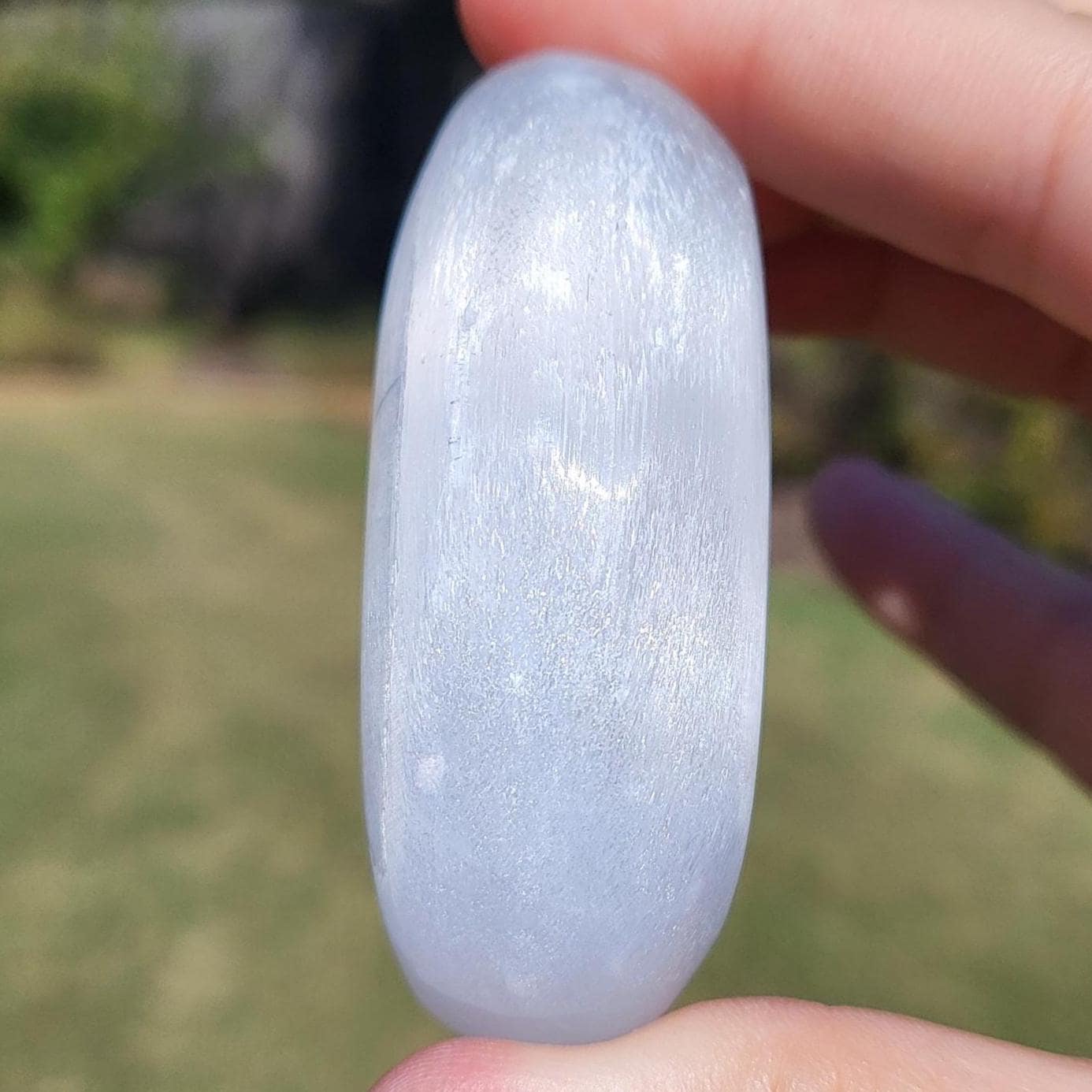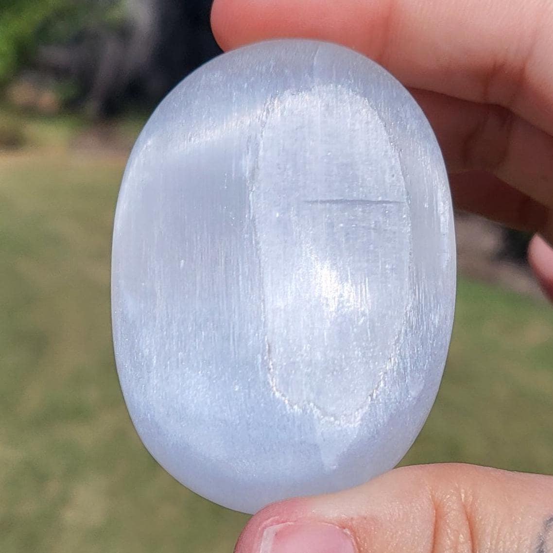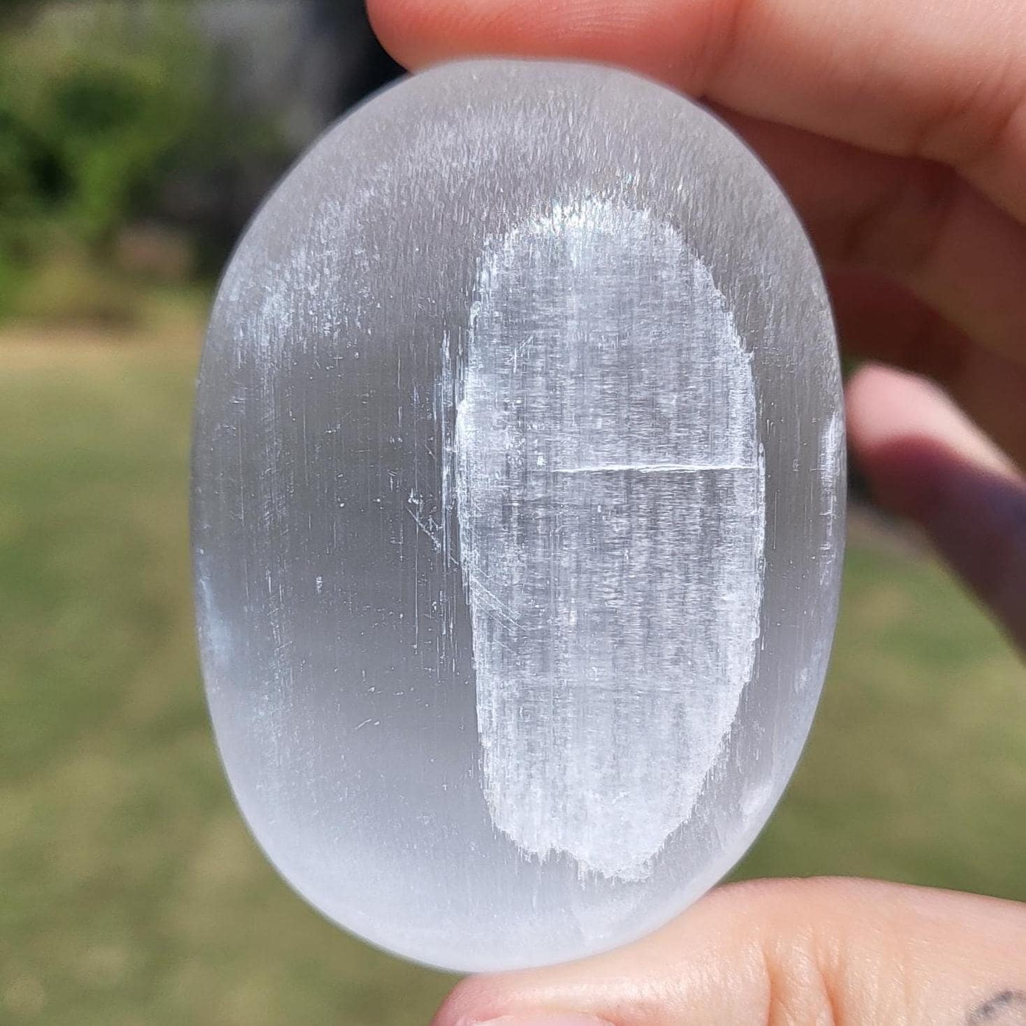 This listing is for the shiny, glowing selenite polished palm stone shown in the photos above. Measuring approximately 2.5" in length, the shine off of this palm stone is absolutely incredible in the sunlight. Pictures don't do her justice so I have included a video to help better capture her shine. The energy that I get from this crystal feels very magical, happy, and transformative. She would be excellent as a meditation or magical working companion, as part of a crystal grid, used as a cleansing plate, or placed on an altar or sacred space to project her beautiful energy.