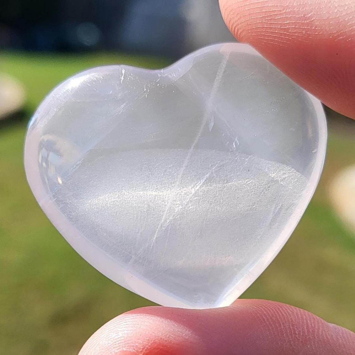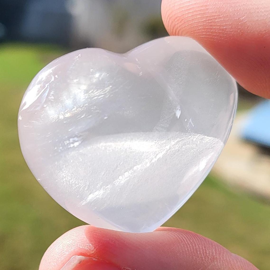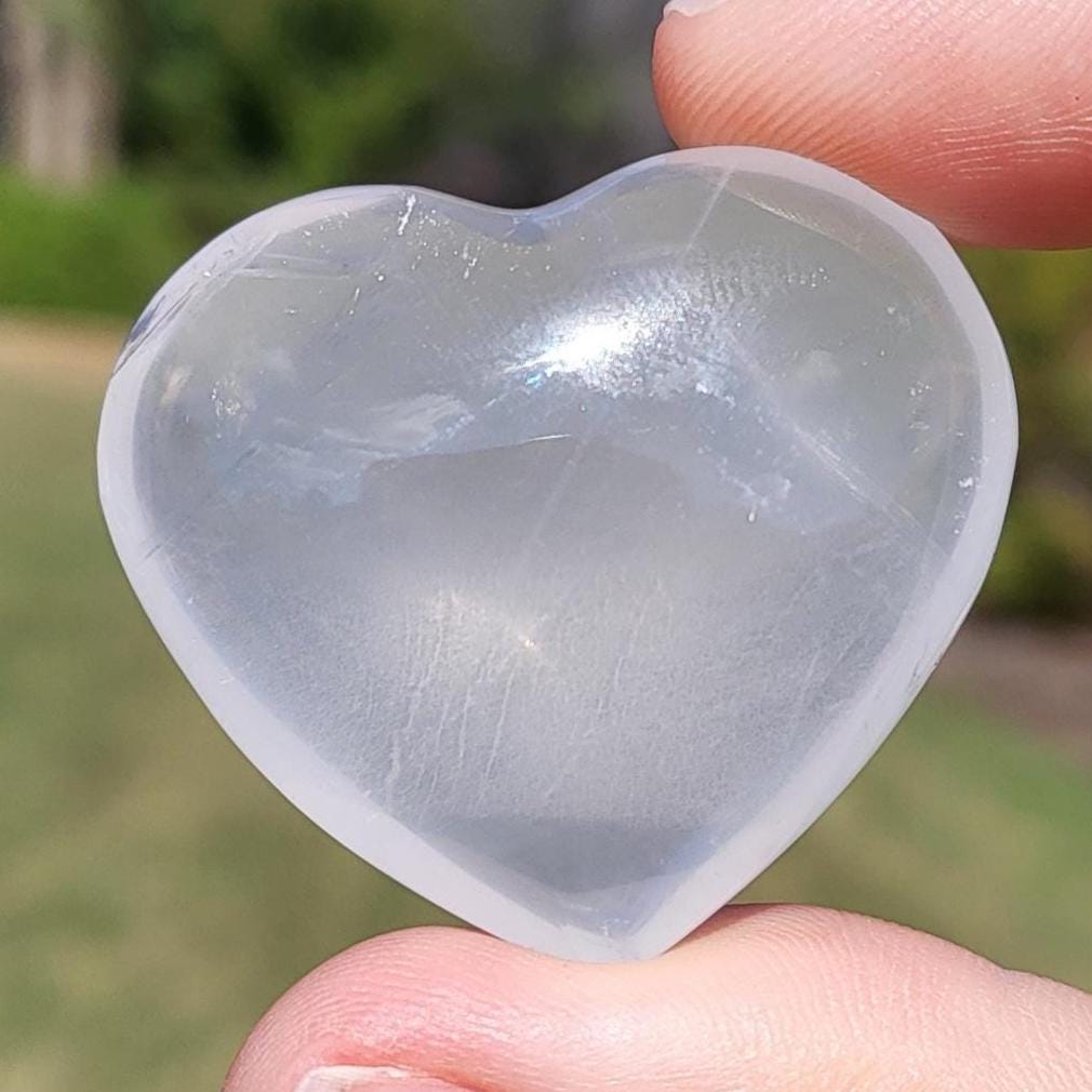 This listing is for the glowing girasol quartz crystal heart shown in the photos above. Girasol quartz is a variety of clear or "milky" quartz that has a subtle opalescence and sometimes a pink hue in the right light. This effect is the result of microscopic air bubbles and bits of water trapped within the crystal. How cool! This girasol comes from South Africa and has such a subtle and beautiful shine. I have included a video to help capture her opalescence and show off her rainbow! The energy that I get from this crystal is very calming, healing and magical. She would be excellent as a worry stone or daily crystal companion, placed on an altar or working space, or set anywhere in your home to project her lovely energy.