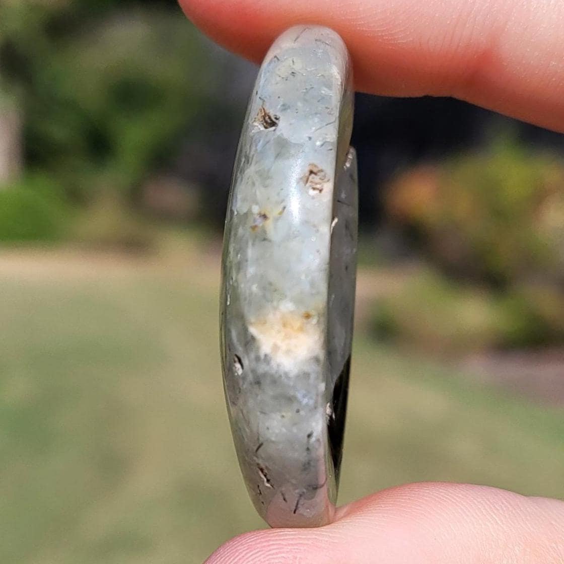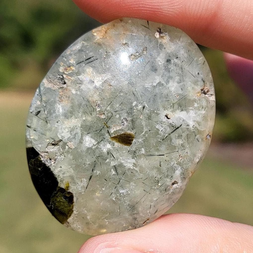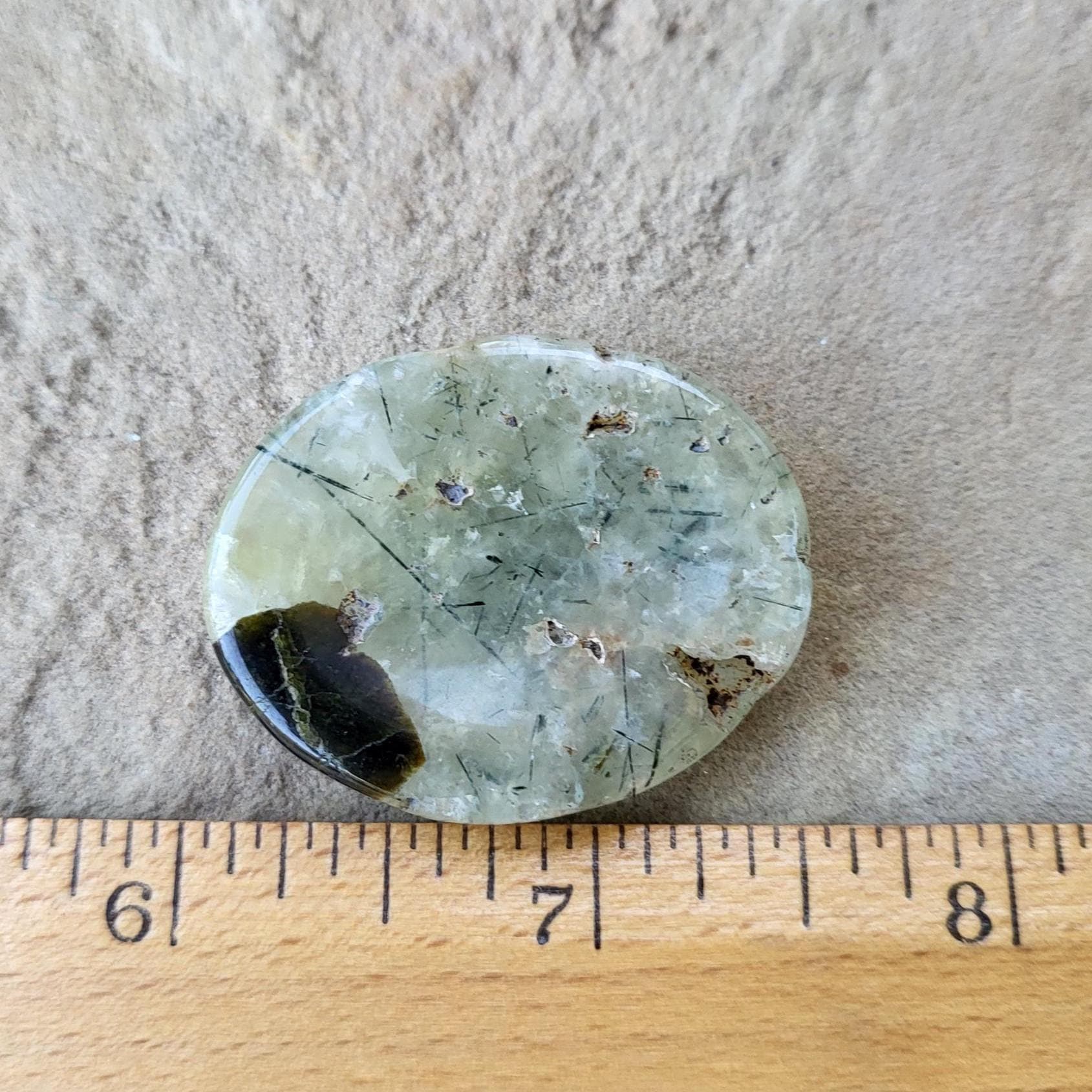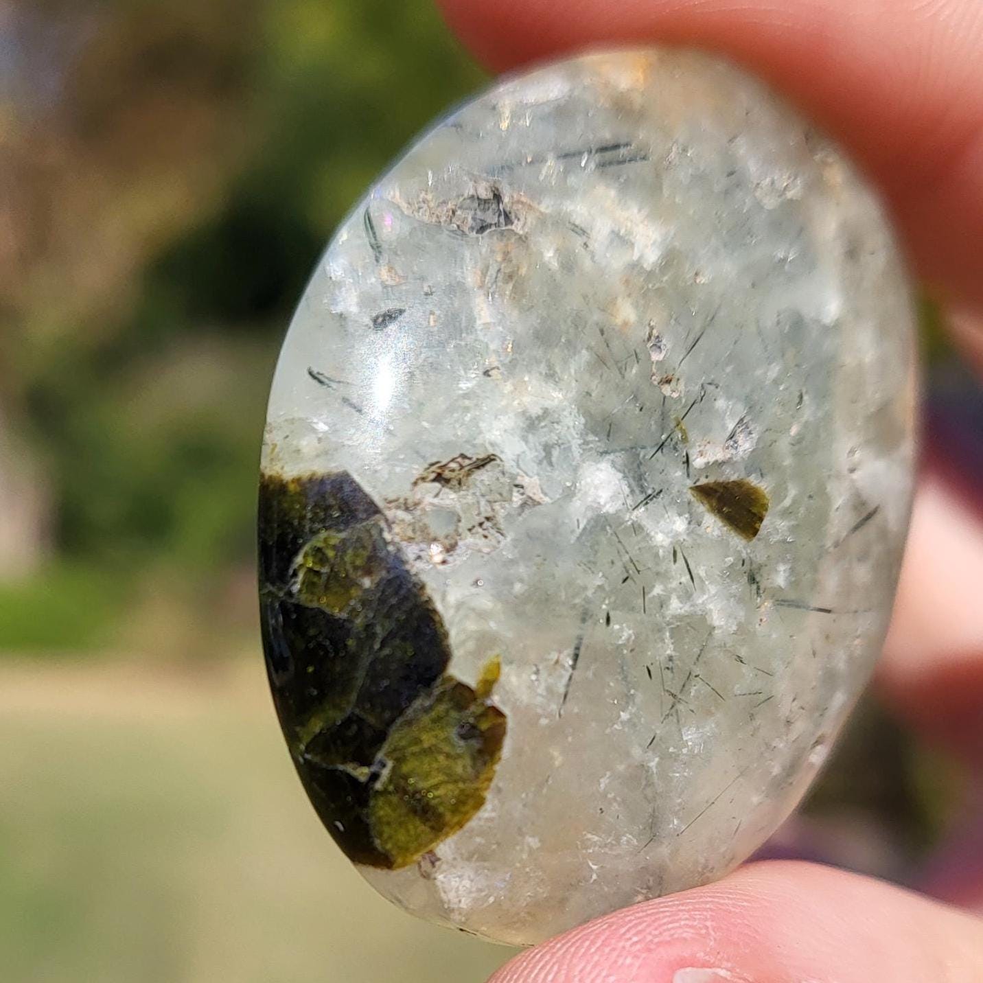 This listing is for the beautiful prehnite with epidote polished crystal worry stone shown in the photos above. The light green prehnite has amazing clarity that allows you to see the specks and shards of dark green epidote within. 100% made by Mama Earth, this crystal has some small natural caverns all around her and a tiny rainbow inclusion in the right light. This little crystal is so incredibly beautiful when the sunlight shines through her! I love the vibrant, dark green square of epidote she has at one end. The energy that I get from this crystal is very positive, accomplished, and filled with earth wisdom. This worry stone would be perfect as pocket stone or carried in a bag, part of a curiosity cabinet, on an altar or used as a meditation companion.
