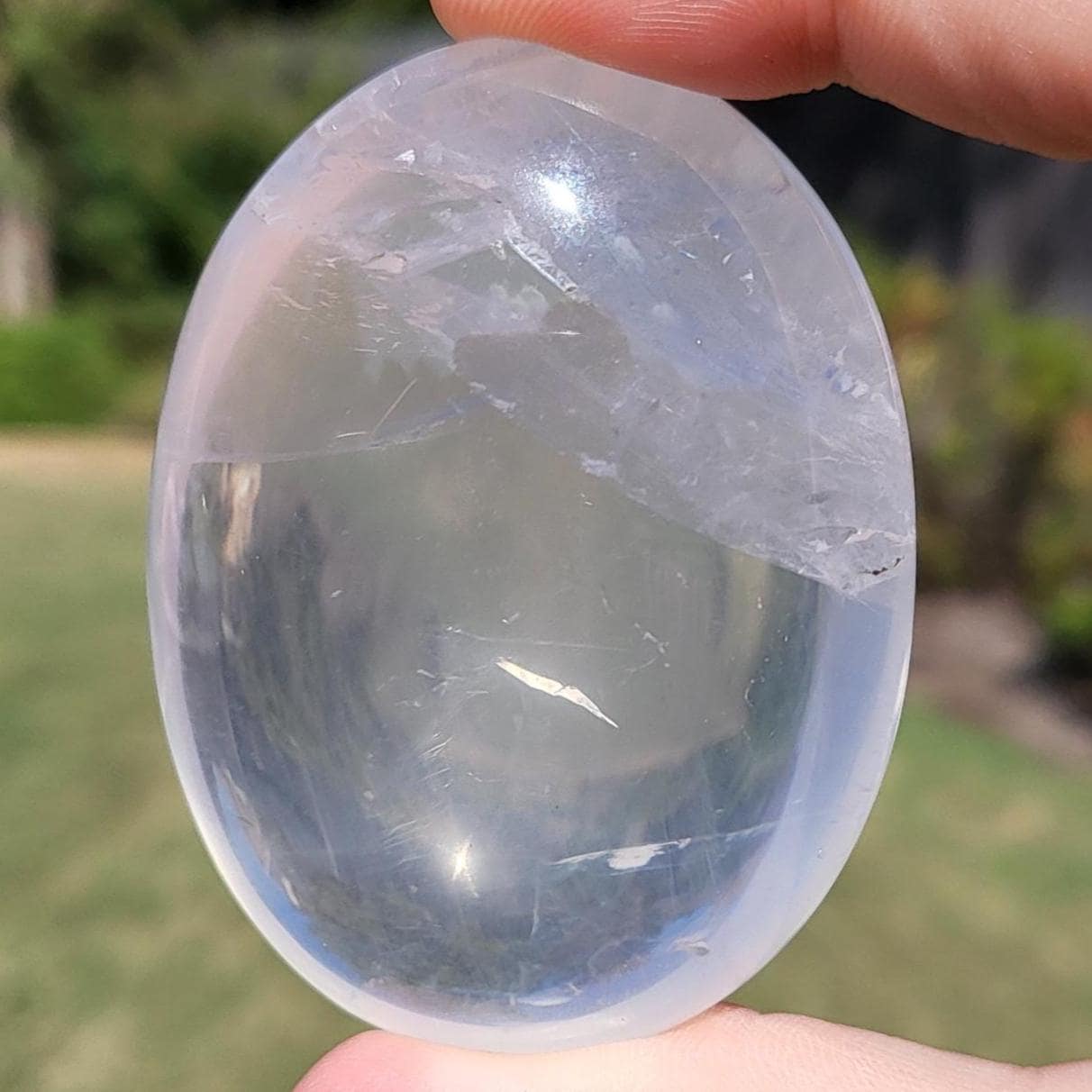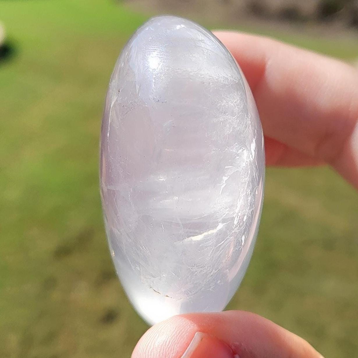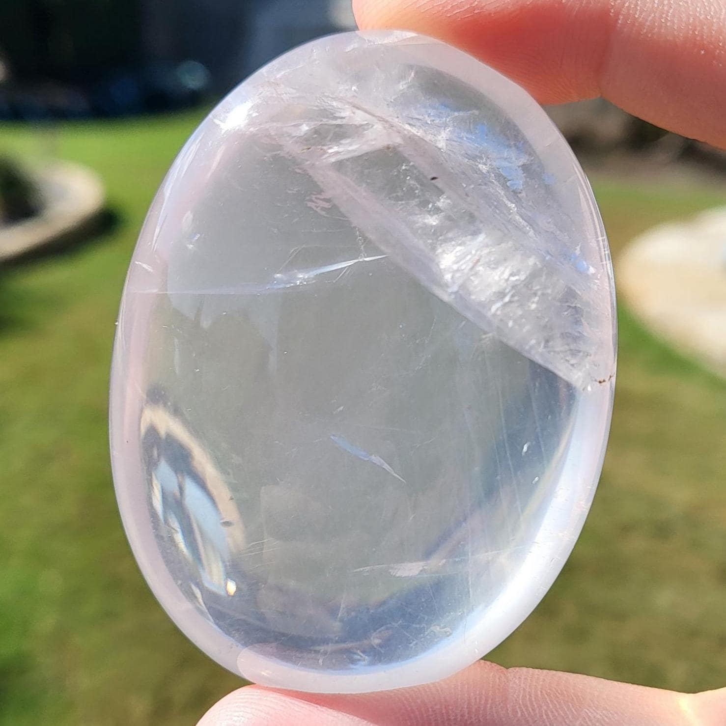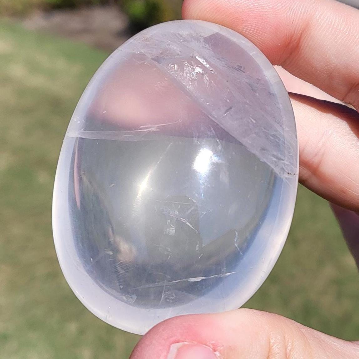 This listing is for the glowing girasol quartz crystal palm stone shown in the photos above. This crystal has such a beautiful soft pink color and natural opalescence in the sunlight - she looks like she subtly lights up and glows in the sun! Girasol quartz is a variety of quartz that has a subtle opalescence and sometimes a pink hue in the right light. This effect is the result of microscopic air bubbles and bits of water trapped within the crystal. How cool! This girasol comes from South Africa and has such a subtle and beautiful shine. Measuring approximately 2.5" in length, the color and shine in this crystal is 100% natural and created by Mother Earth! The energy that I get from this crystal is pure magic and joy. She would be excellent as a worry stone or daily crystal companion, placed on an altar or working space, or set anywhere in your home to project her lovely energy.