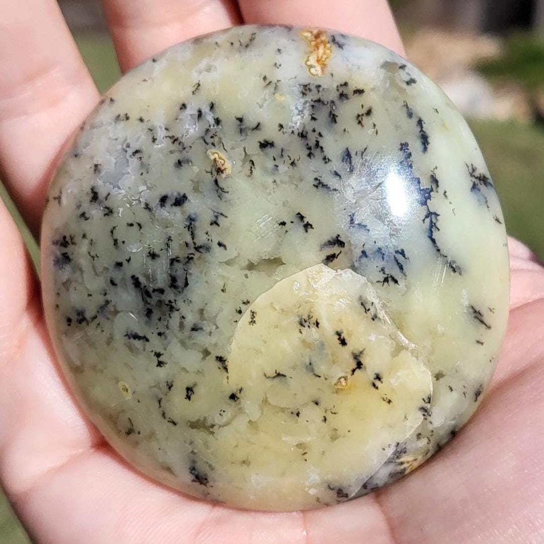 Dendritic opal is associated with intense spiritual growth, prosperity, abundance, healing, and magic. Said to be cleansing and healing, dendritic opal takes one on an intense spiritual journey to help them find joy, abundance, and become the fullest version of themselves. Dendritic opal is also associated with earth magic and enhancement of magical and spiritual workings. It helps one to see the beauty, power, and lessons of nature, and how to work with those powers for good.