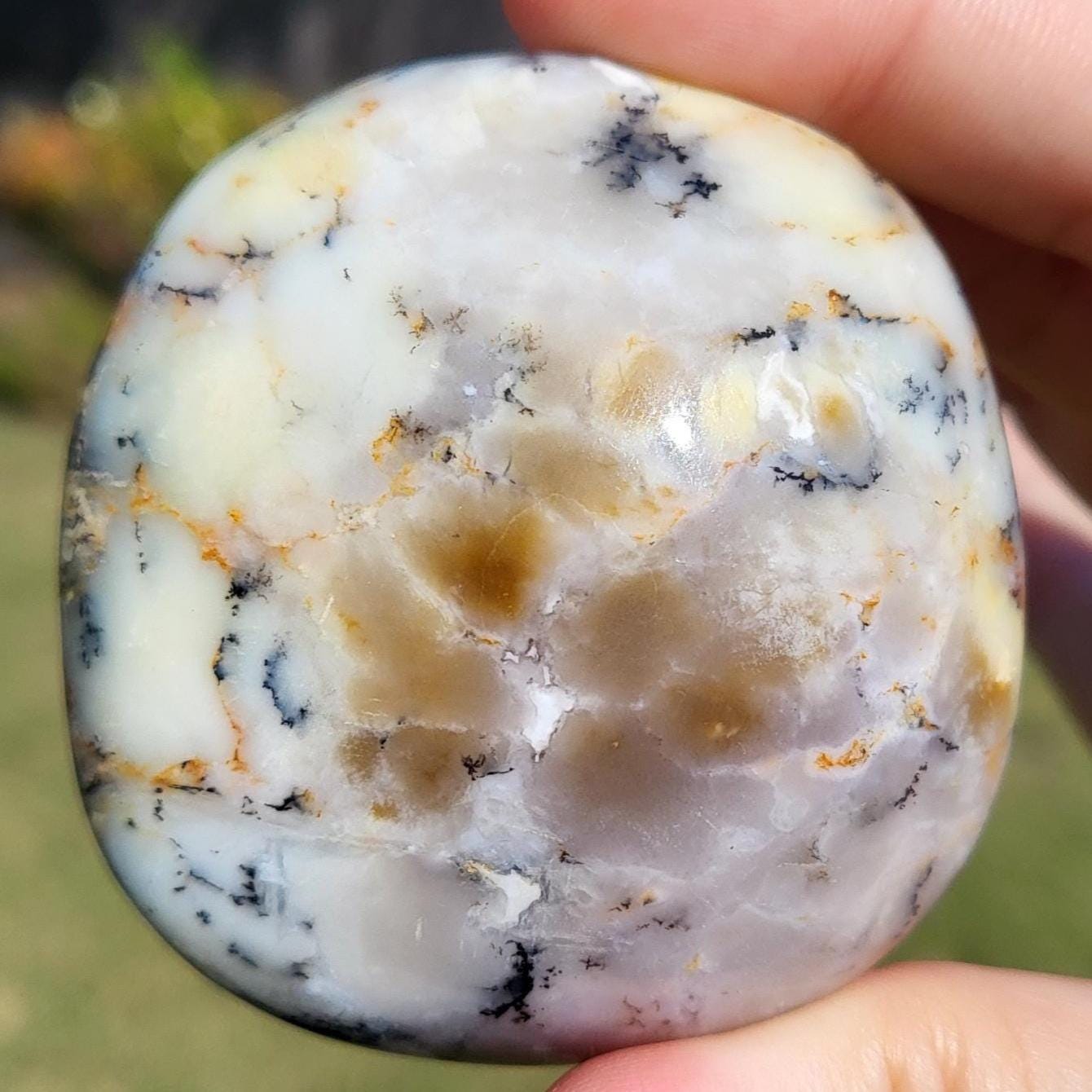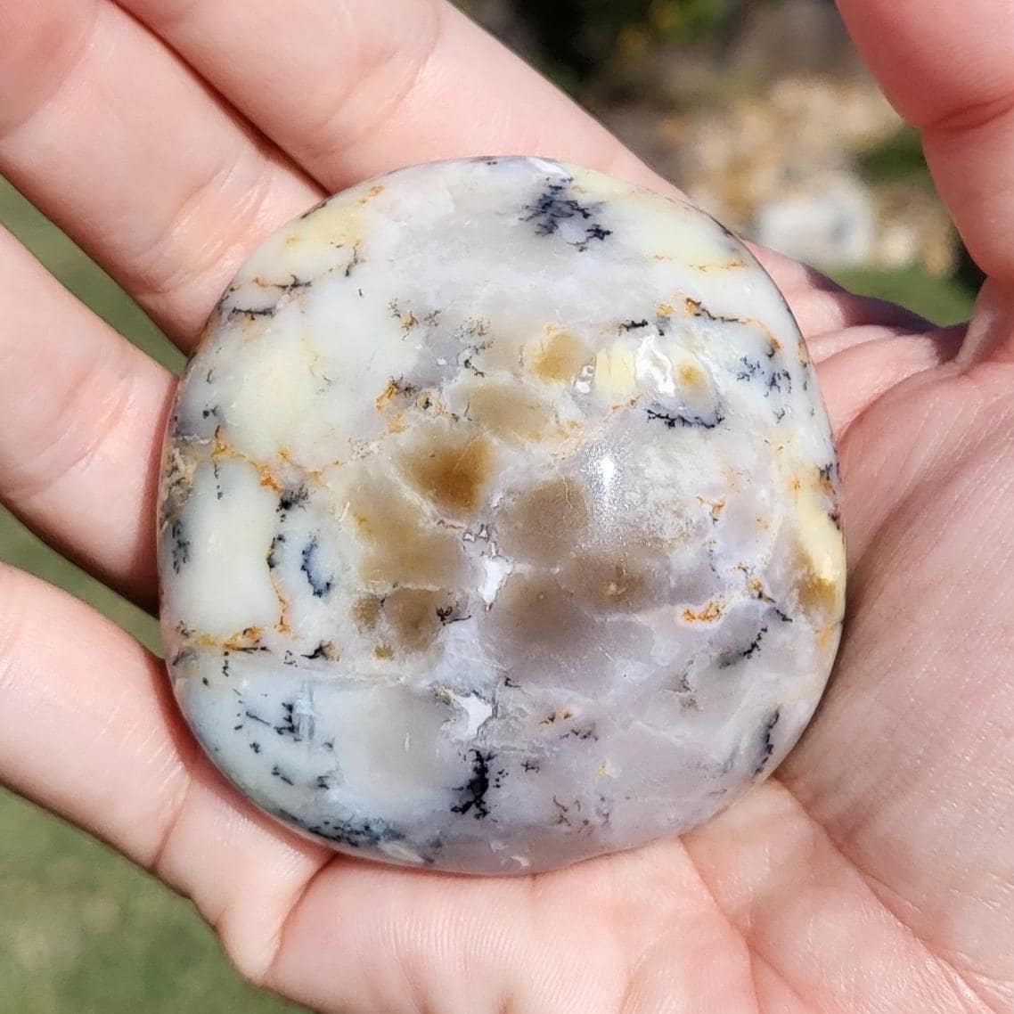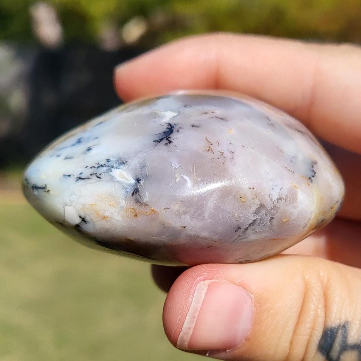 Dendritic opal is associated with intense spiritual growth, prosperity, abundance, healing, and magic. Said to be cleansing and healing, dendritic opal takes one on an intense spiritual journey to help them find joy, abundance, and become the fullest version of themselves. Dendritic opal is also associated with earth magic and enhancement of magical and spiritual workings. It helps one to see the beauty, power, and lessons of nature, and how to work with those powers for good.