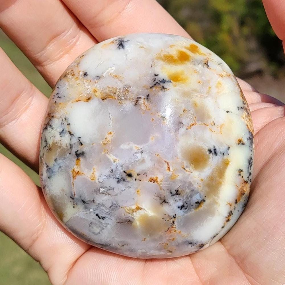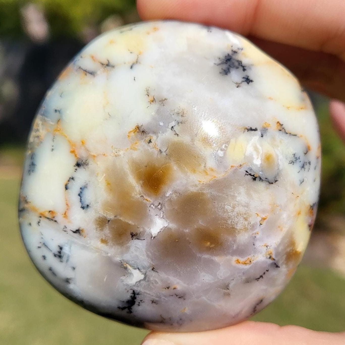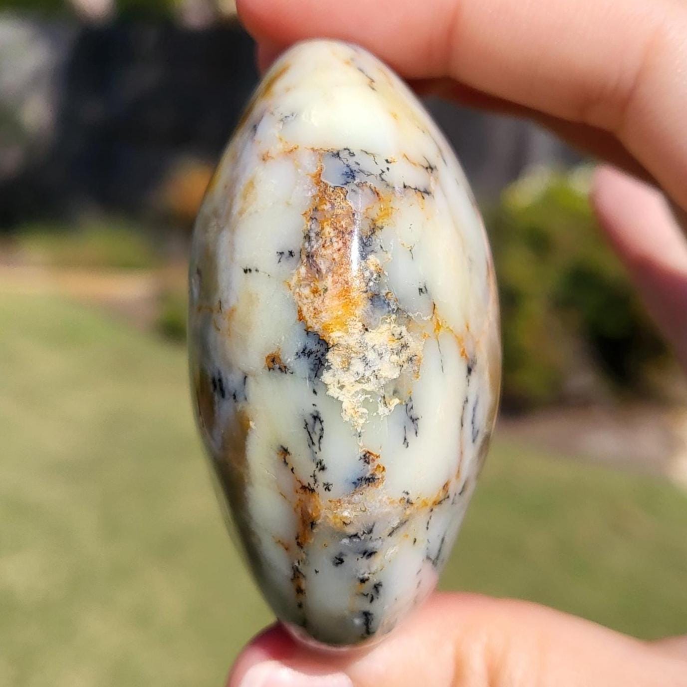 Dendritic opal is associated with intense spiritual growth, prosperity, abundance, healing, and magic. Said to be cleansing and healing, dendritic opal takes one on an intense spiritual journey to help them find joy, abundance, and become the fullest version of themselves. Dendritic opal is also associated with earth magic and enhancement of magical and spiritual workings. It helps one to see the beauty, power, and lessons of nature, and how to work with those powers for good.