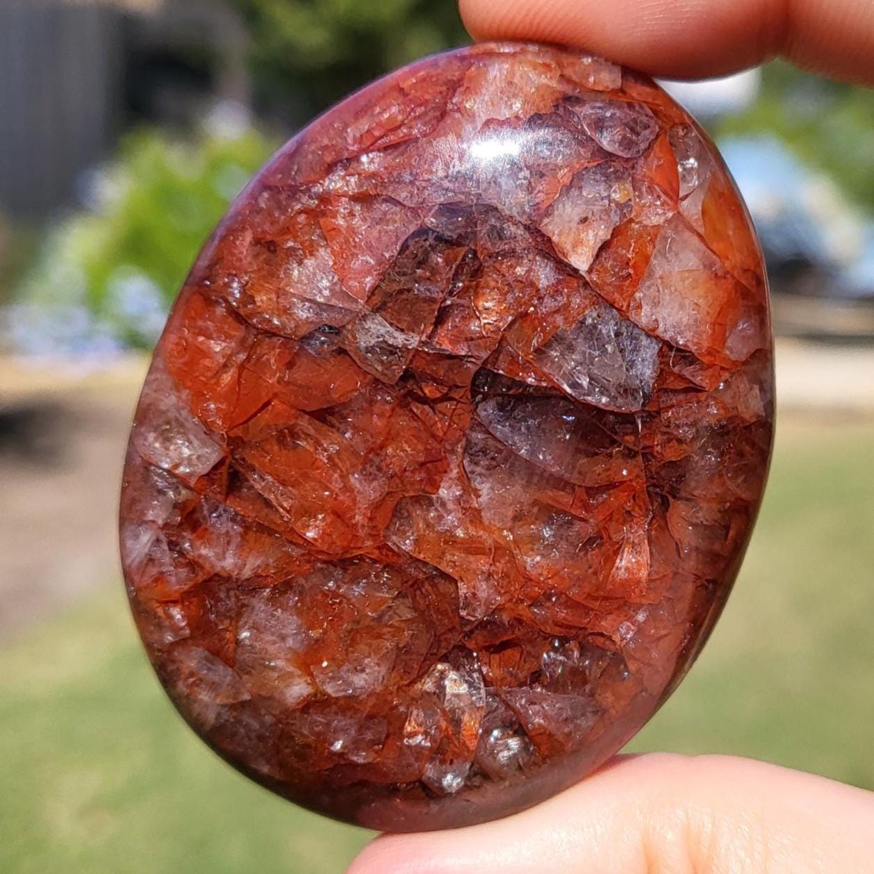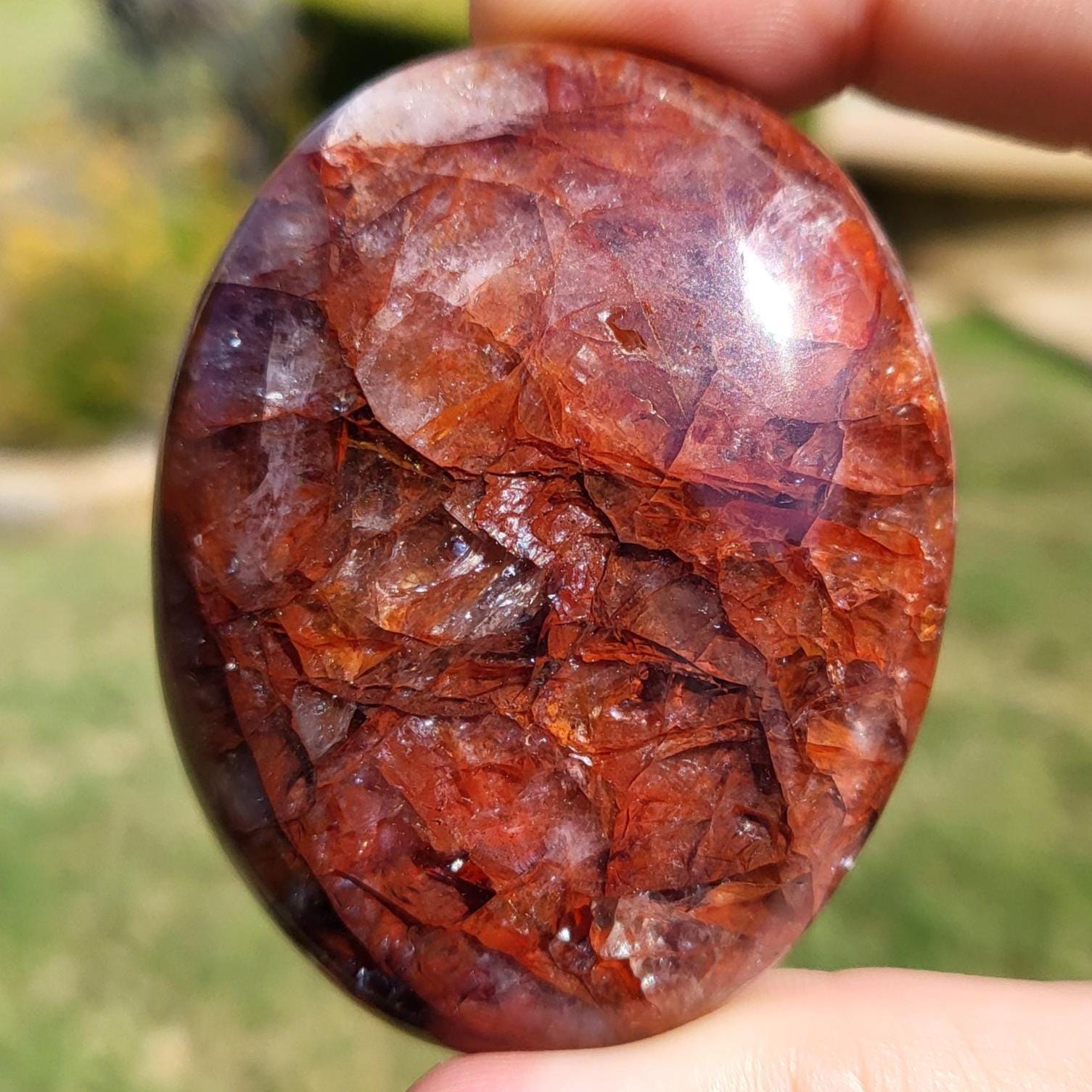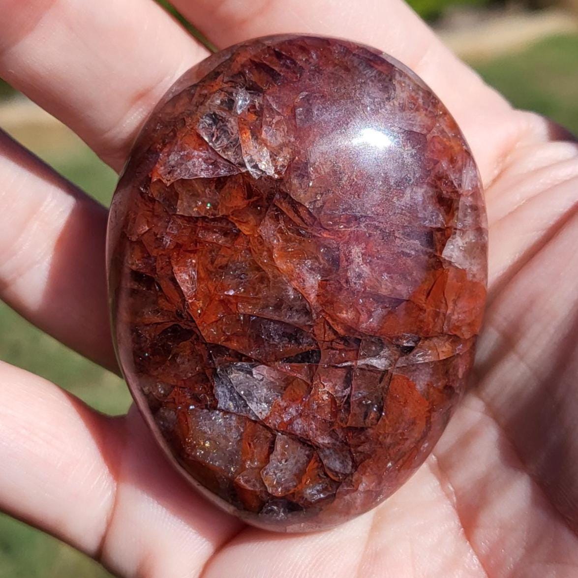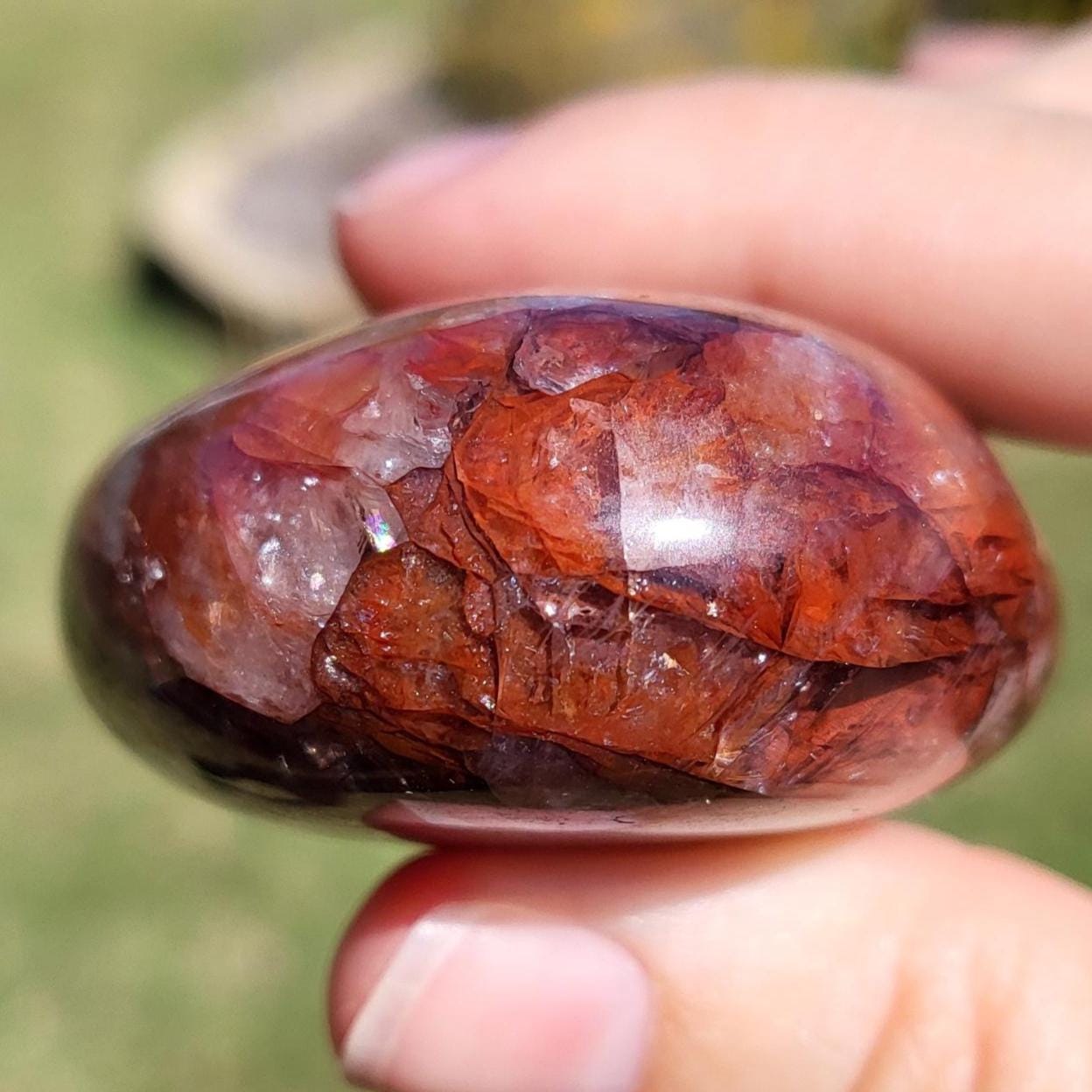 This listing is for the VIBRANT and sparkly hematoid quartz crystal palm stone shown in the photos above. This crystal measures approximately 2" in length and his color and clarity are absolutely out of this world! He sparkles and glitters in the right light and even has a gorgeous tiny rainbow inclusion in the right light! He has been polished to a beautiful shine and his color is 100% natural and created by Mother Earth. He would be excellent as a daily crystal companion for meditation and magical workings, as part of an altar space or medicine bag, or placed anywhere within your home to project his vibrant energy.