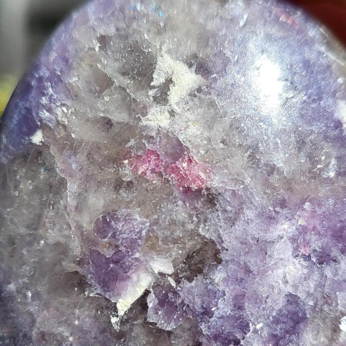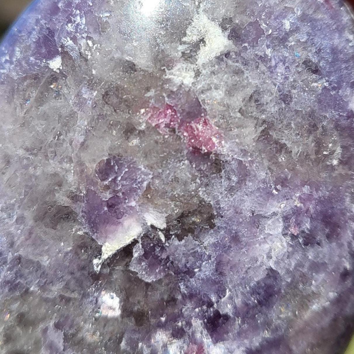 Lepidolite is said to help balance and heal the emotional and spiritual body. It promotes calm, focus, and concentration throughout one's life, and is said to help us connect to spirit guides and the spiritual realm.