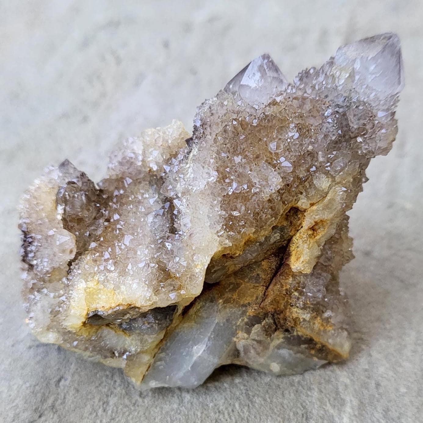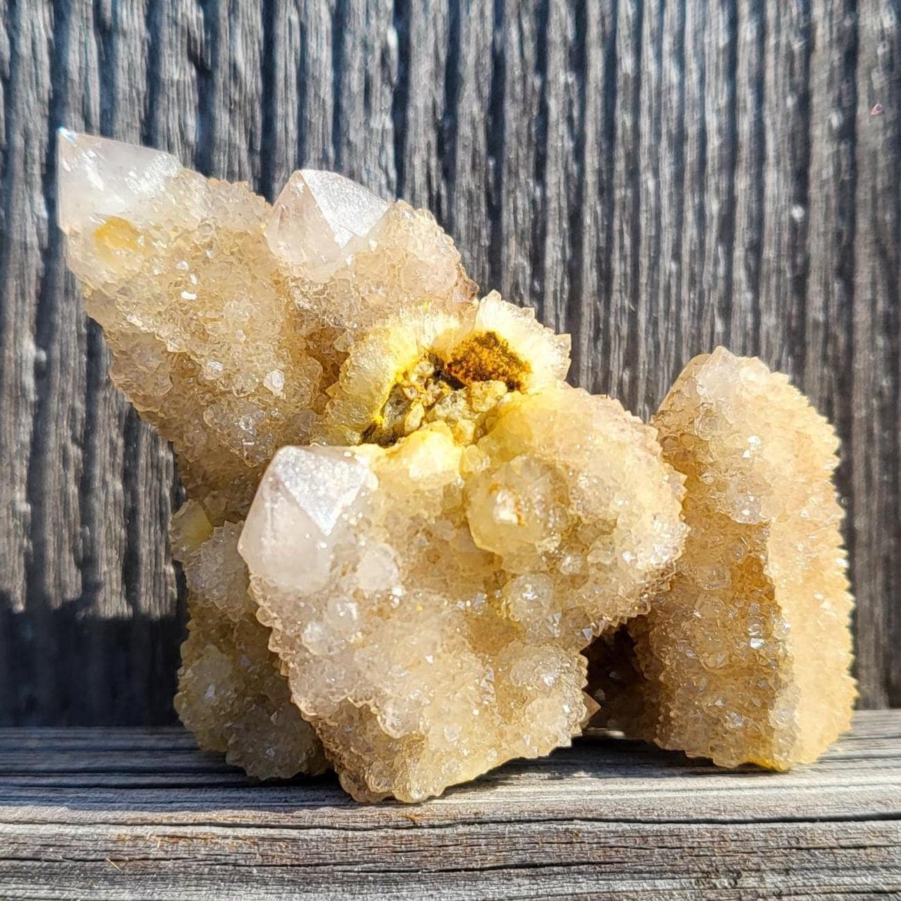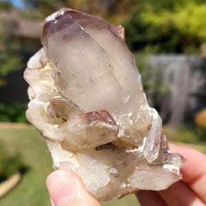 Spirit quartz is known for its distinctive "cactus flower" crystal structure of many smaller points growing off of a main, larger point. It comes in many colors from white to reddish brown to amethyst and citrine.