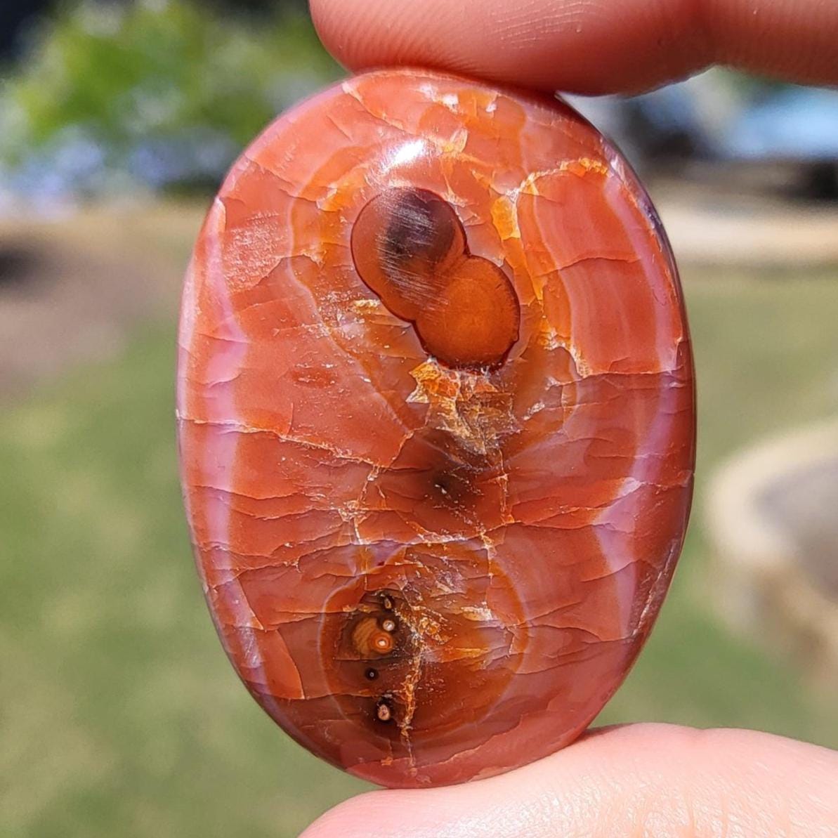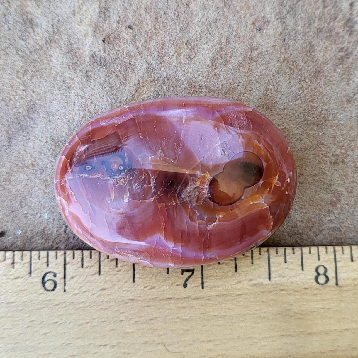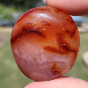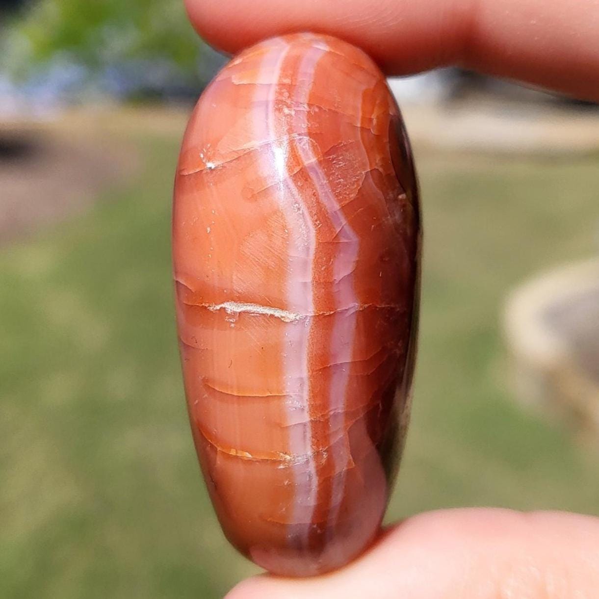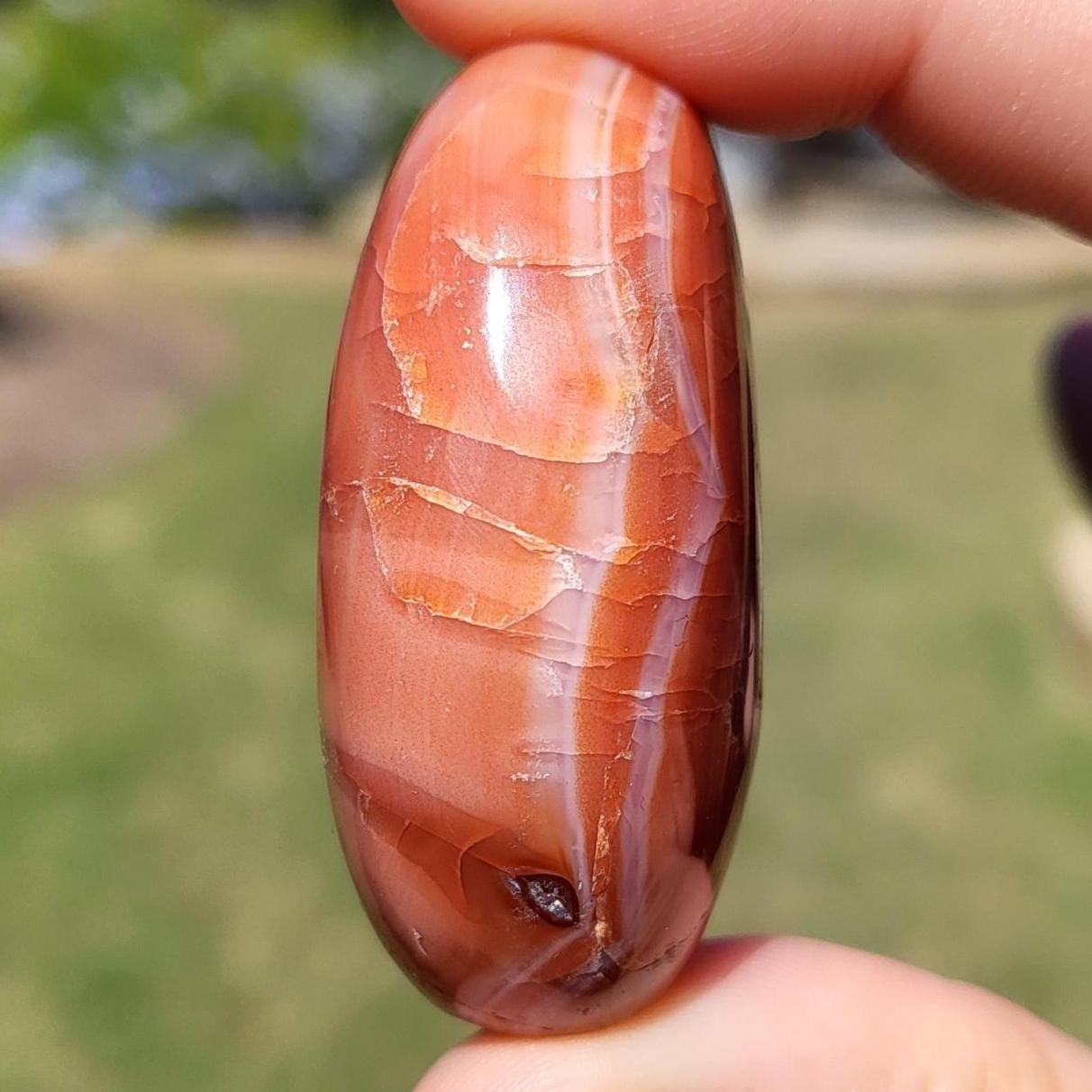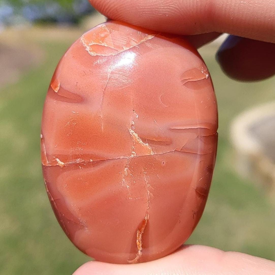This listing is for the beautiful carnelian crystal palm stone shown in the photos above. She measures approximately 1.7" in length and is filled with hues of vibrant orange, pink, and red. This crystal has gorgeous swirls and lines within her - I absolutely adore the white lines running all around the face of the stone! She is 100% natural and made by Mama Earth. The energy that I get from this crystal is so magical, strong, and joyful. She would be excellent as a meditation or magical working companion, or placed anywhere in your home or sacred space to project her magical, abundant energy.