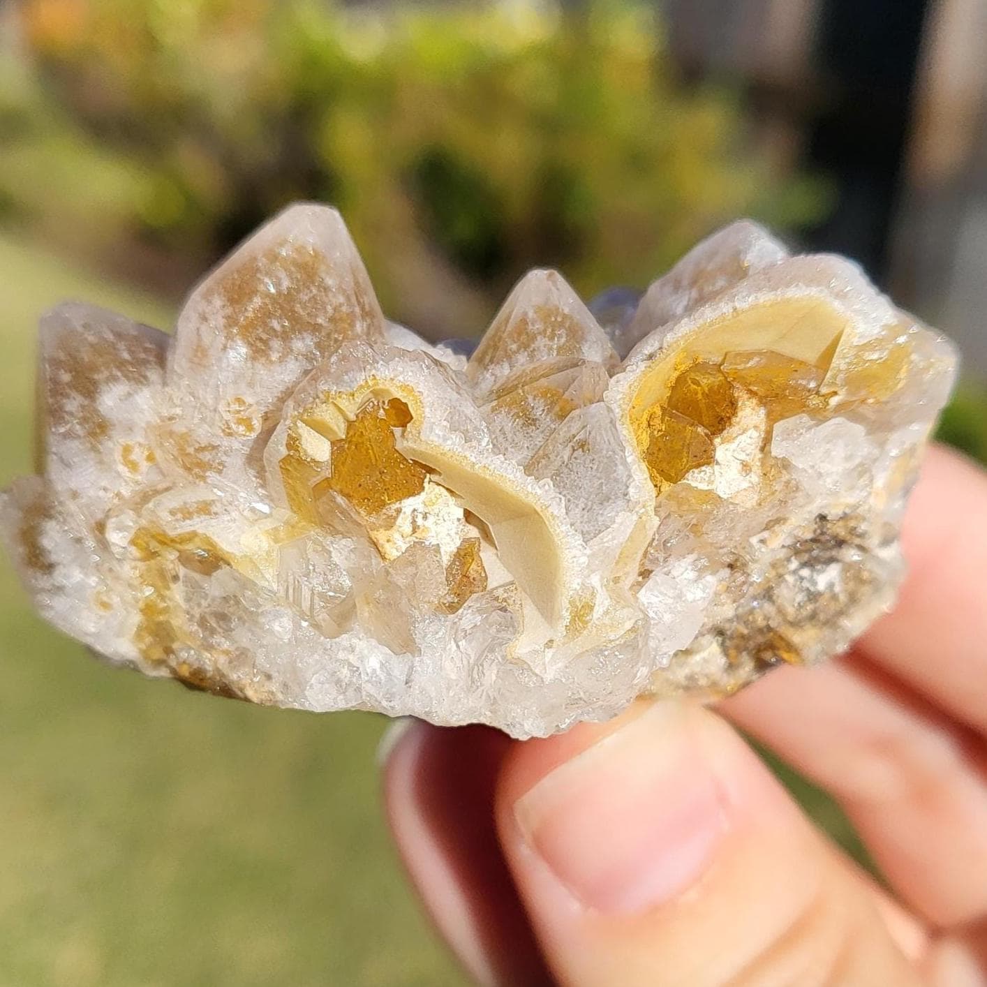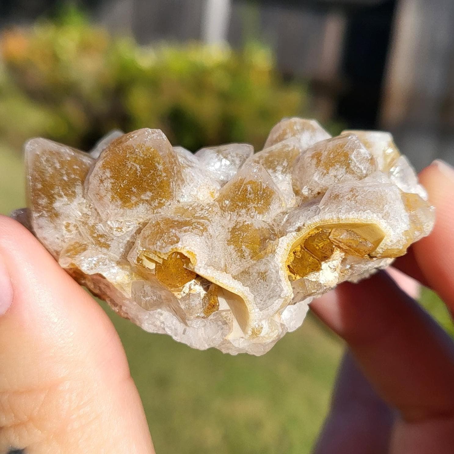 Limonite, also known as golden healer quartz, is a variety of quartz known for its distinctive honeycomb matrix. The limonite which makes the quartz yellow is actually an inclusion within the quartz, causing some of the crystals to have lovely phantoms.