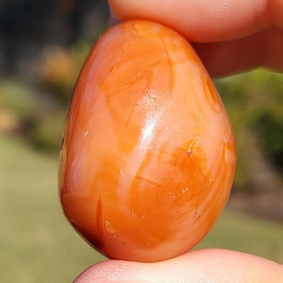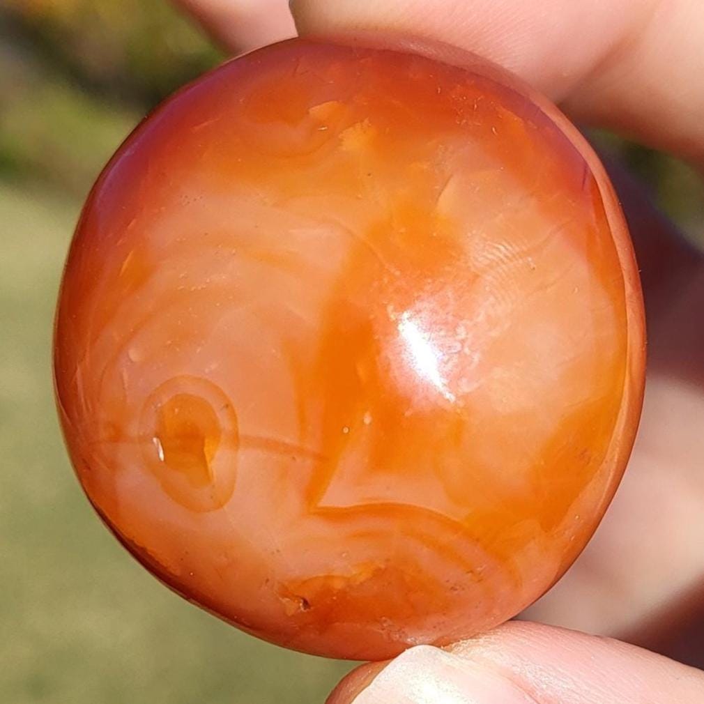 This listing is for the fiery polished carnelian crystal tumbled stone shown in the photos above. She measures approximately 1.5" in diameter and her colors and patterns remind me of they eyes of the goddess Brigid. This crystal has gorgeous swirls of red, and orange, 100% natural and made by Mama Earth. The energy that I get from this crystal is very warm, magical, joyful, and abundant. She would be excellent as a meditation or magical working companion, or placed anywhere in your home or sacred space to project her magical, abundant energy.