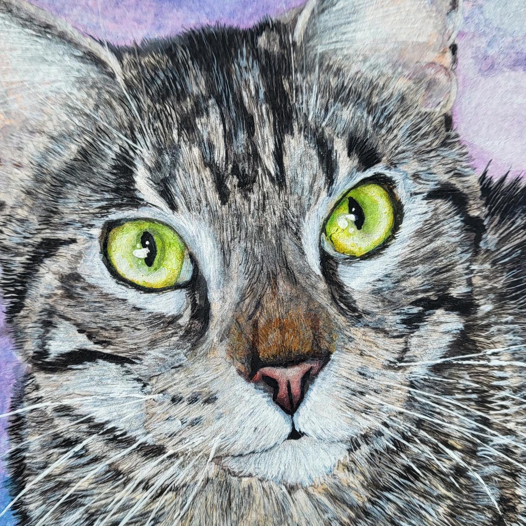 This listing is for a beautiful custom hand-painted portrait of your most precious and beloved cat in vibrant mixed media! Painted with love by the artist to honor your kitty's beauty, personality and spirit, each portrait is an original, one-of-a-kind piece that has been created by hand with time and care. A wonderful way to commemorate your most precious moments and memories with your loved one.